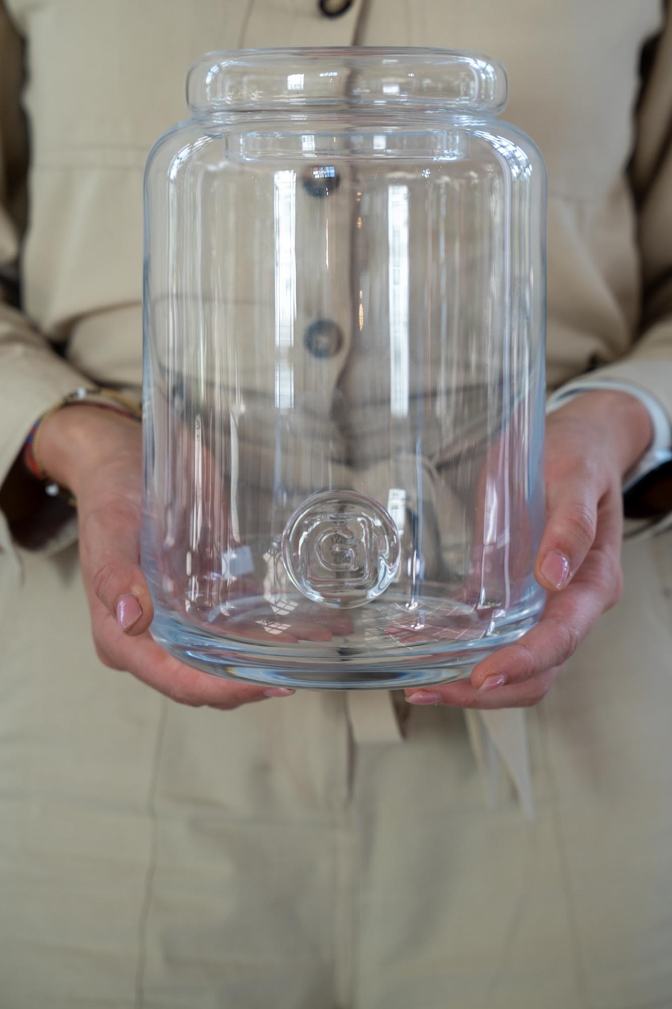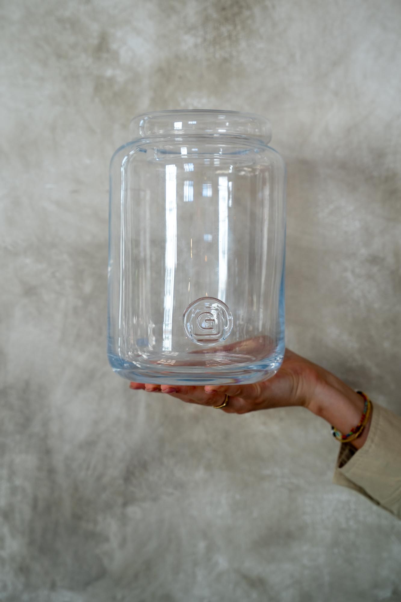 Een elegante Gommaire bonbonnière van helder glas met ene hoge vorm. Ideaal voor pasta, koekjes of gewoon zichzelf. Door de eenvoudige, zachte lijnen past deze hogere bonbonnière moeiteloos in een open kast of op het aanrecht. Praktisch in gebruik, maar ook gewoon mooi om te laten staan.