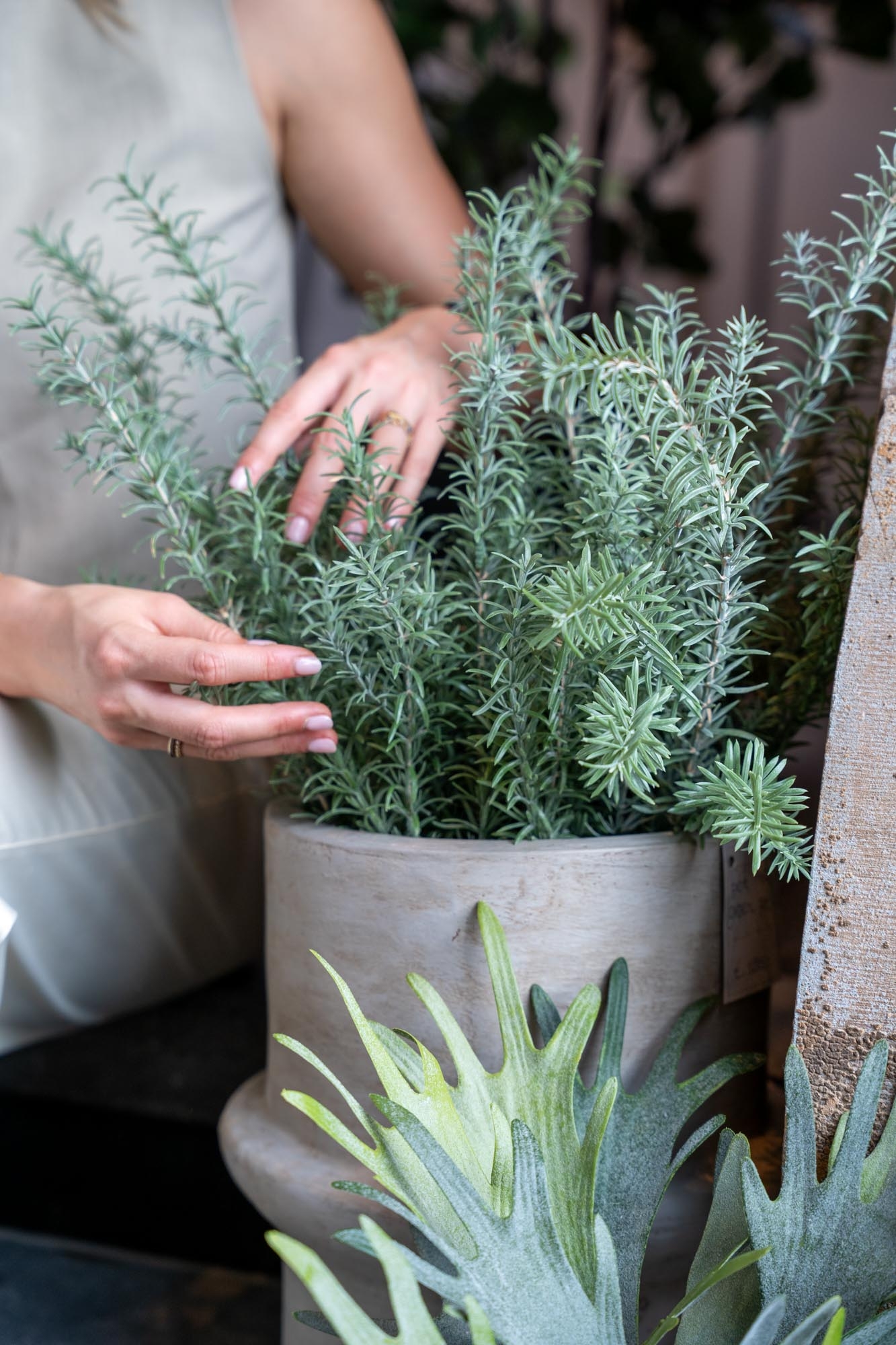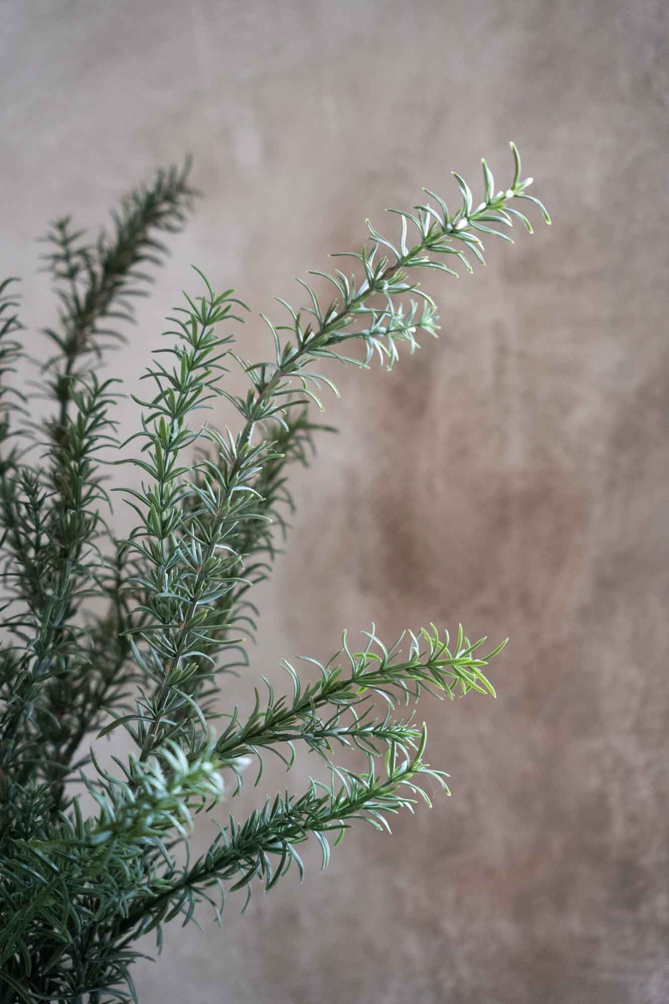 Een realistisch bosje kunst-rozemarijn met fijne, groene naaldachtige blaadjes en een natuurlijke vorm.Makkelijk te verwerken in potten, vazen of bloemstukken en perfect te combineren met andere kunstkruiden of groen.