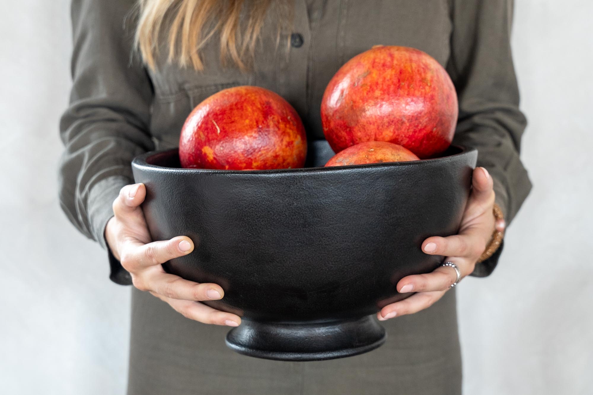 Geef je interieur een vleugje moderne elegantie met de Bowl Dallas. Het diepe zwart en de subtiel gestructureerde afwerking zorgen voor een stoere maar verfijnde uitstraling. Dankzij de stevige voet en royale afmeting is deze schaal ideaal als fruitschaal, maar ook prachtig om puur decoratief neer te zetten.