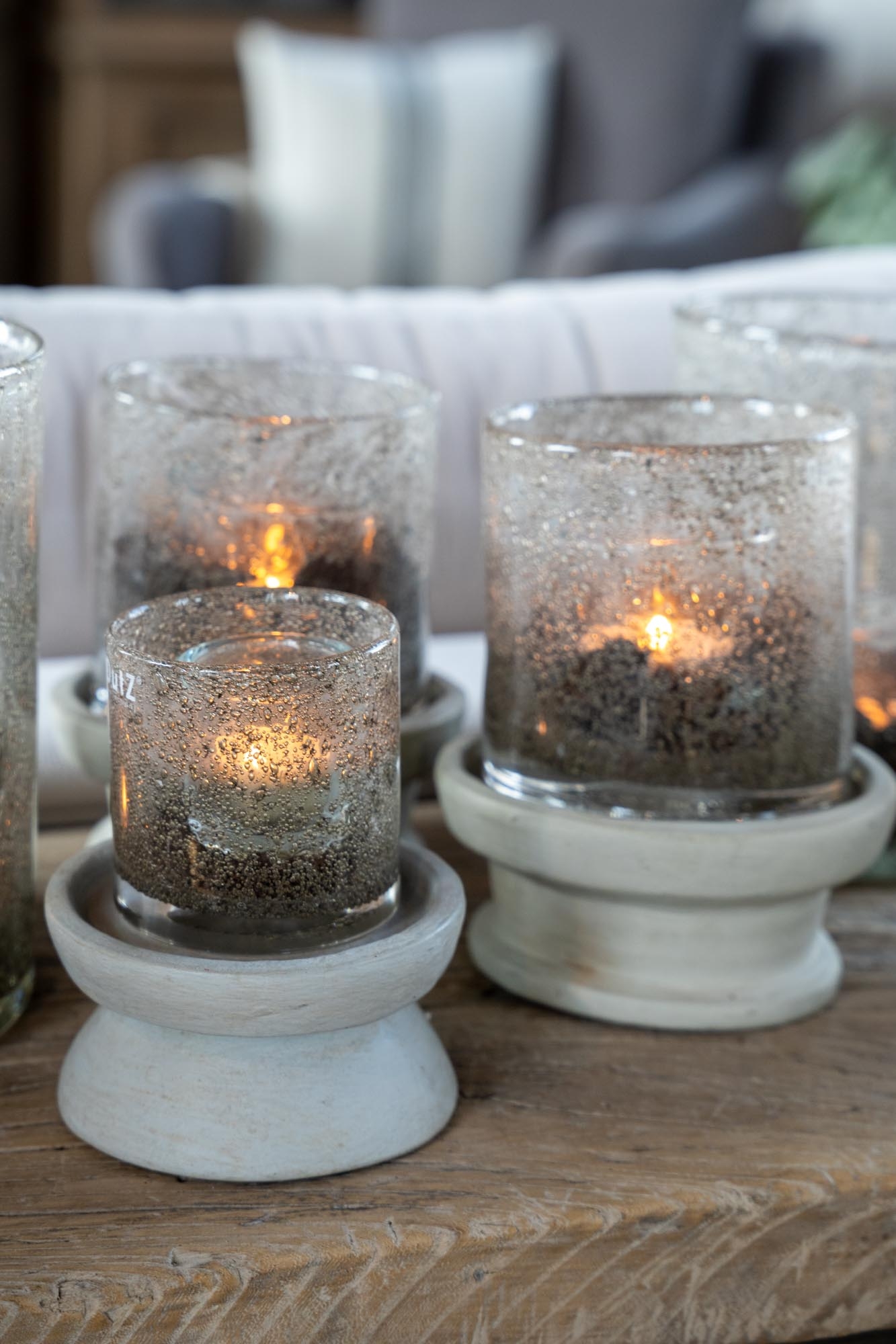 Een sfeervolle Gommaire houder met een robuuste look, ideaal voor een kaars of theelicht. De natuurlijke tint en aardse structuur geven direct warmte aan je interieur.