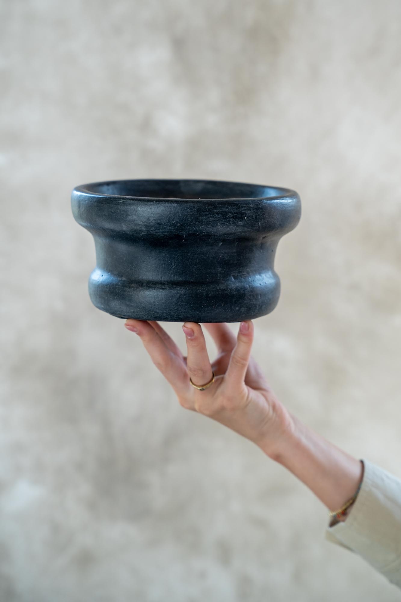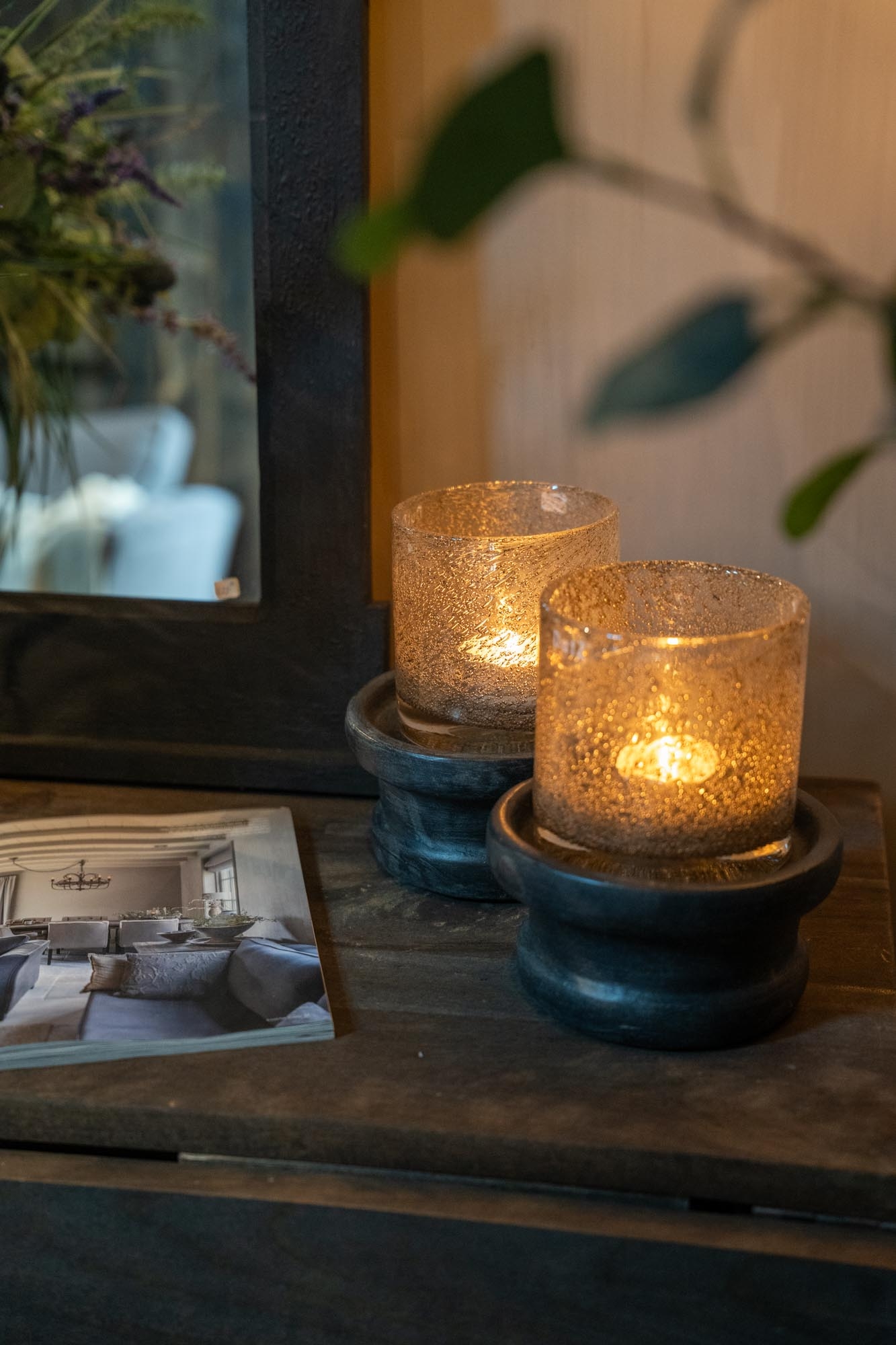 Een sfeervolle Gommaire houder met een robuuste look, ideaal voor een kaars of theelicht. De donkere tint en aardse structuur geven direct warmte aan je interieur.