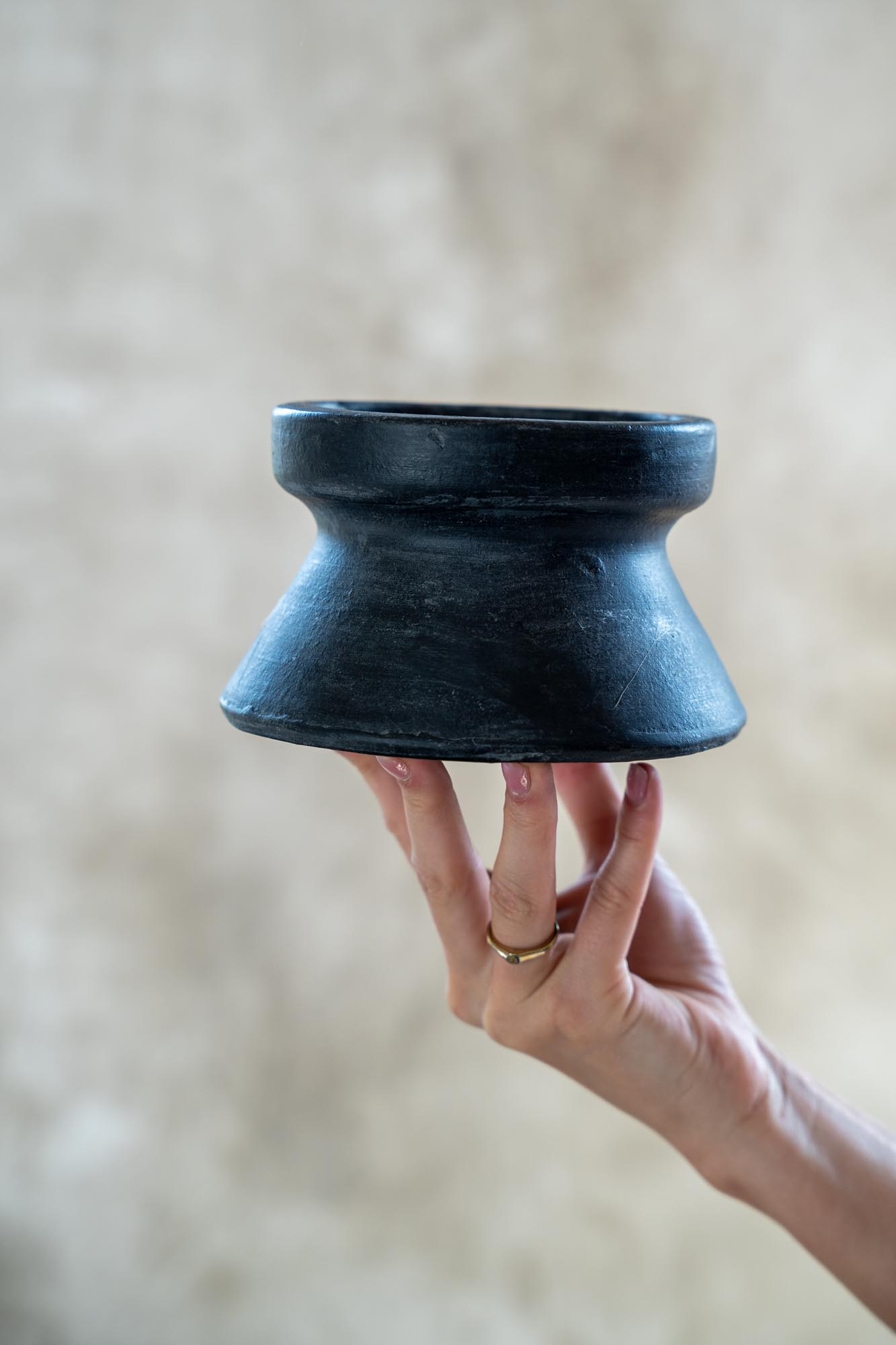 Deze robuuste Gommaire kaarsenhouder in een zwarte tint geeft direct karakter aan je interieur. Gemaakt van handgevormd keramiek met een natuurlijke structuur.