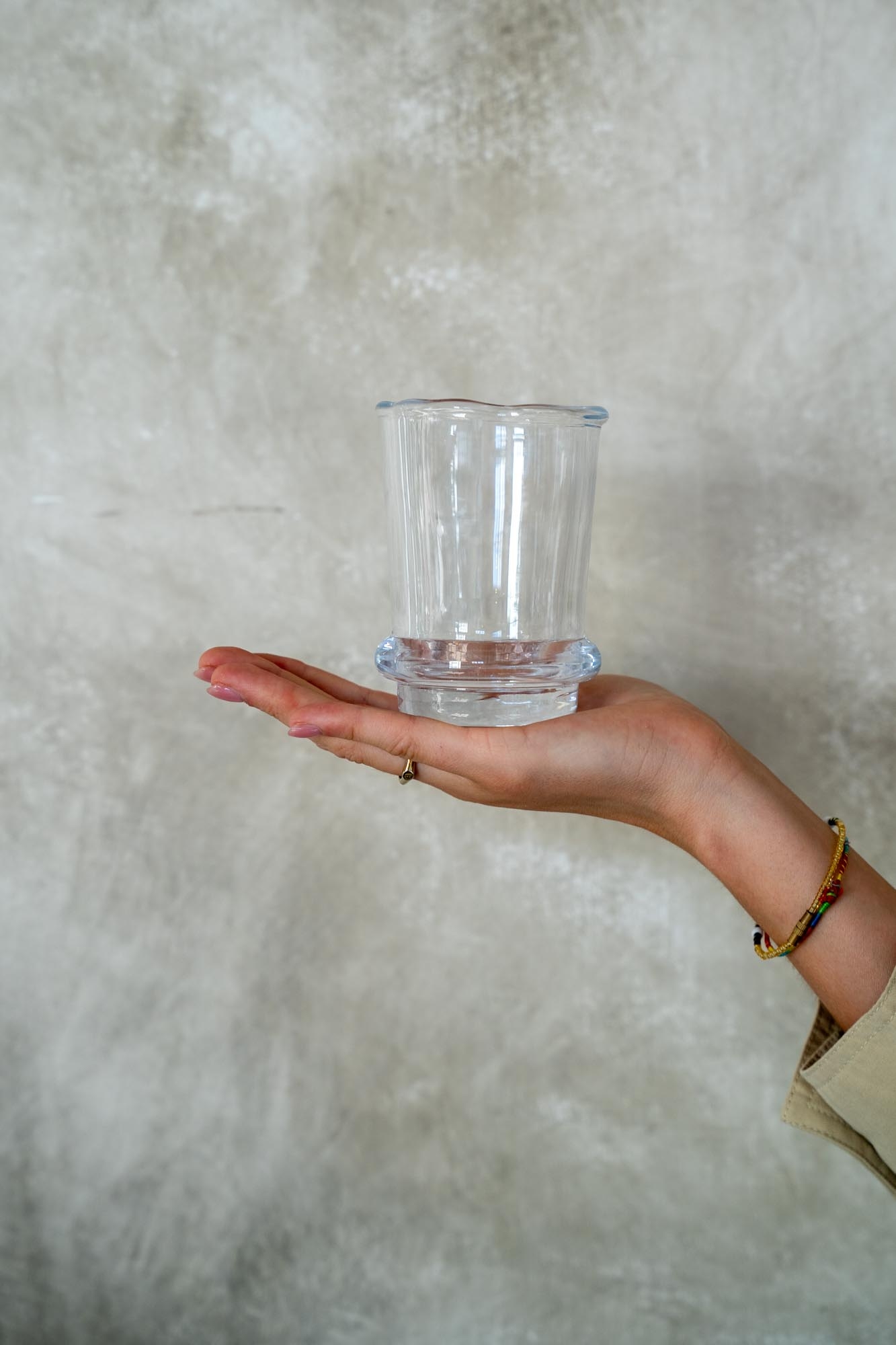 Een klein, karaktervol Gommaire glas met een robuuste rand. Leuk als wijn of waterglas. Ook leuk ter decoratie op een plankje, in een nis of op een schaal. Zet er een theelichtje in of vul hem met wat fijne schelpjes of zand. Subtiel en sfeervol. Elk glas is uniek en mond geblazen. Deze worden per stuk verkocht.