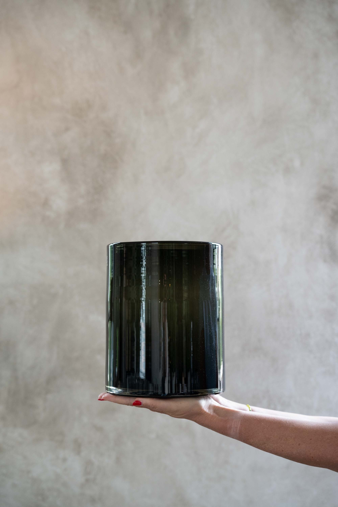 Een groter model windlicht dat echt tot zijn recht komt op de vloer, een ruime keukentafel of in een hoek van de woonkamer. Door het stevige, mondgeblazen glas is dit windlicht zowel een blikvanger als functioneel item. Vul het met een grote stompkaars of een stijlvol boeket met grove stelen. De kleur smoke voegt rust toe zonder kil te zijn, en combineert prachtig met naturel tinten en aardse materialen. Ook verkrijgbaar in andere maten.
