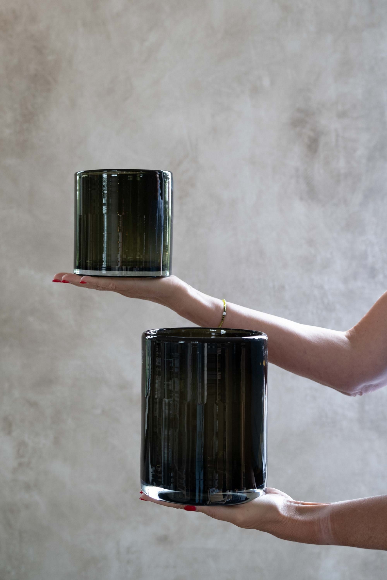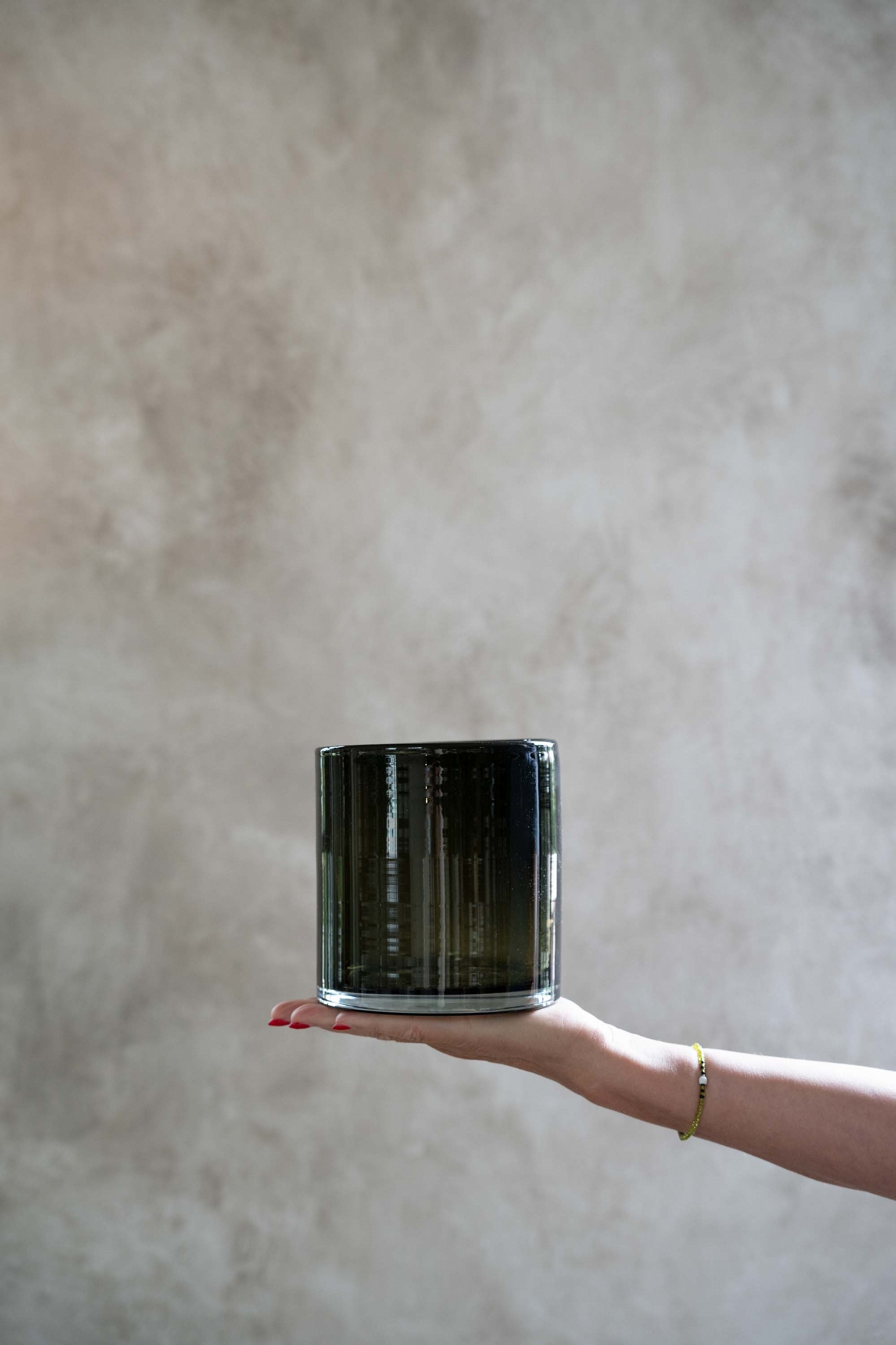 Dit mondgeblazen windlicht van DutZ in een compacte maat is perfect voor op de vensterbank of salontafel. De warme kleur smoke zorgt voor een rustige, sfeervolle uitstraling, zowel met een kaars erin als gewoon als decoratief object. Door de dikte van het glas is elk stuk solide en uniek. Combineer dit formaat bijvoorbeeld met kleinere votives voor een mooi gelaagd effect.