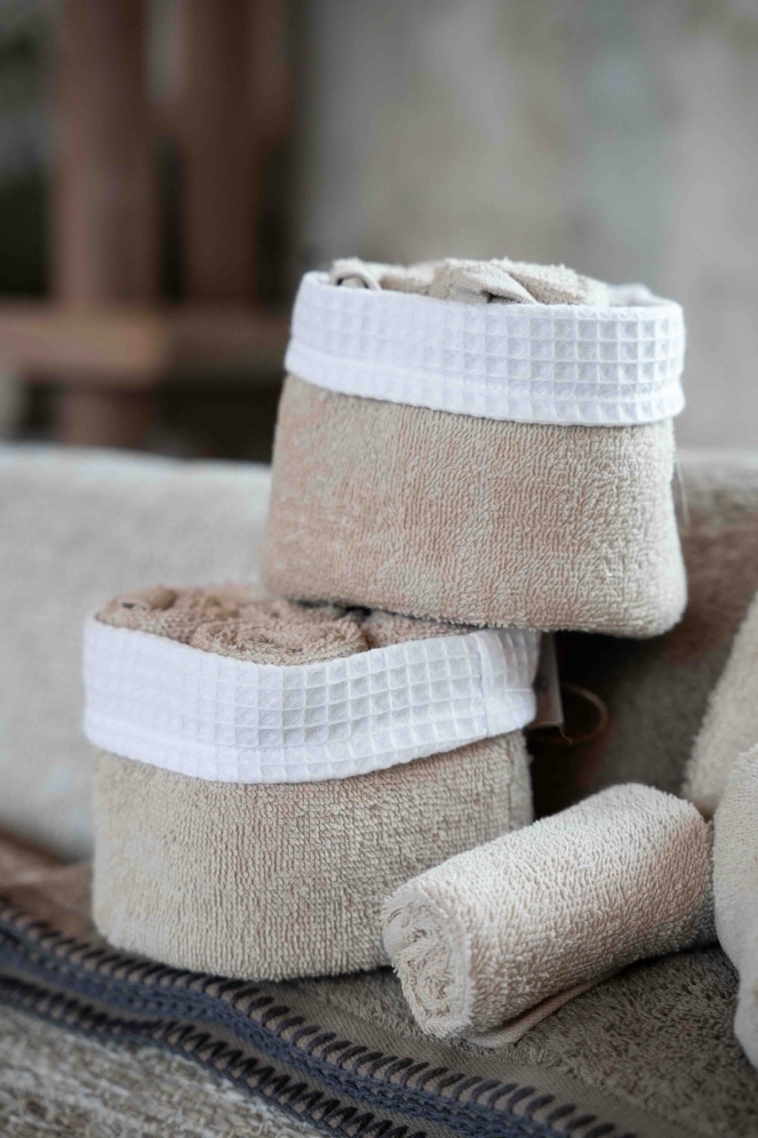 Deze gastendoekjes, ook wel handdoekjes genoemd, in een rustige beigetint zijn een praktische en stijlvolle toevoeging aan elke badkamer of toiletruimte. De neutrale kleur past gemakkelijk bij verschillende interieurstijlen. De boord kan ook worden omgeslagen, waardoor de wafelrand niet zichtbaar is en je een volledig beige, rustige uitstraling creëert.
