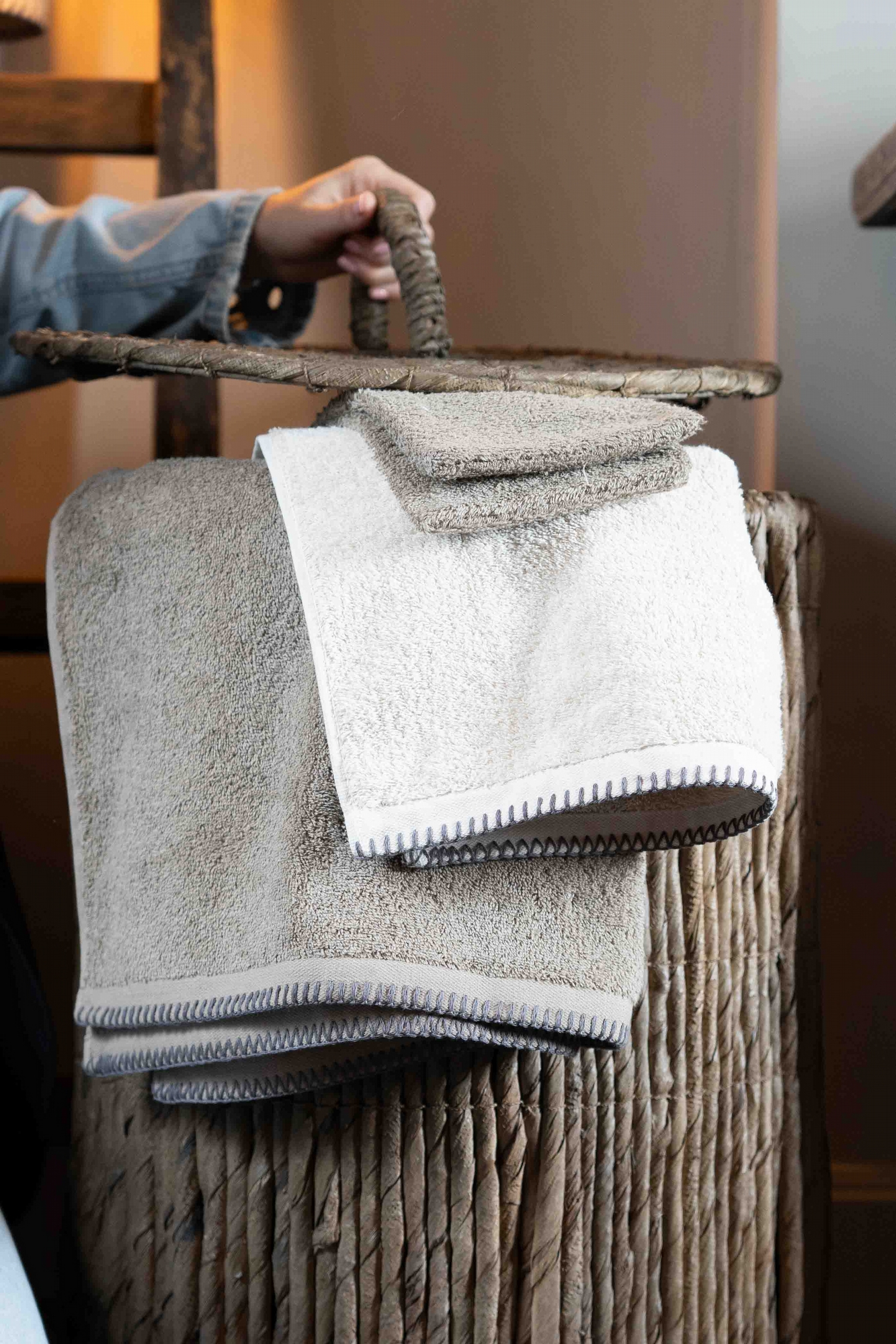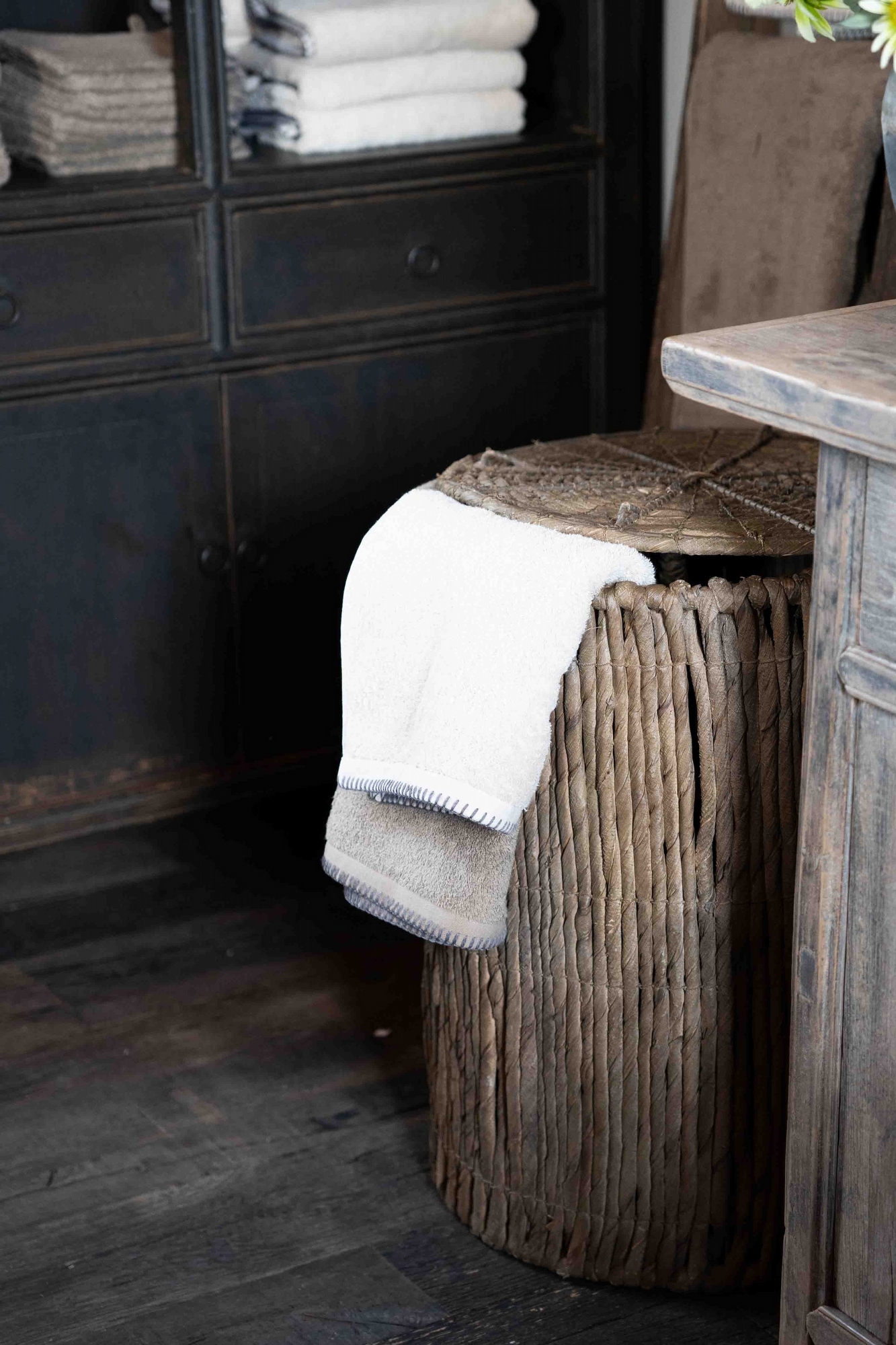 De gewoven mand Nola is gemaakt van natuurlijk gevlochten banaanblad, wat zorgt voor een robuuste en warme uitstraling. Dankzij het deksel en de stevige handgreep is de mand ideaal voor het opbergen van plaids, handdoeken of andere woonaccessoires. Mooi in de badkamer, woonkamer of slaapkamer en tegelijk praktisch in gebruik.