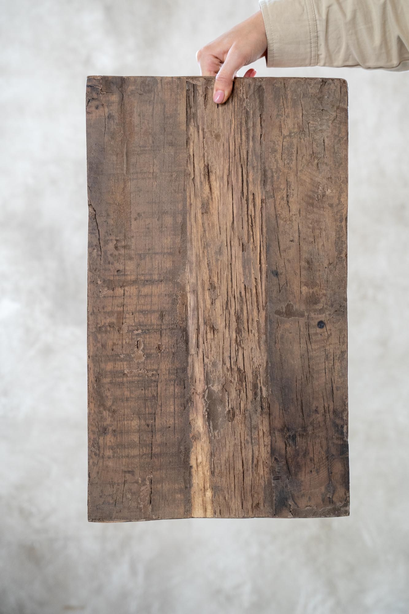Deze authentieke houten bajot is een prachtig stylingstuk met karakter. Gemaakt van oud hout met zichtbare nerven, kleurverschillen en een natuurlijke, verweerde uitstraling en elk exemplaar is uniek.
