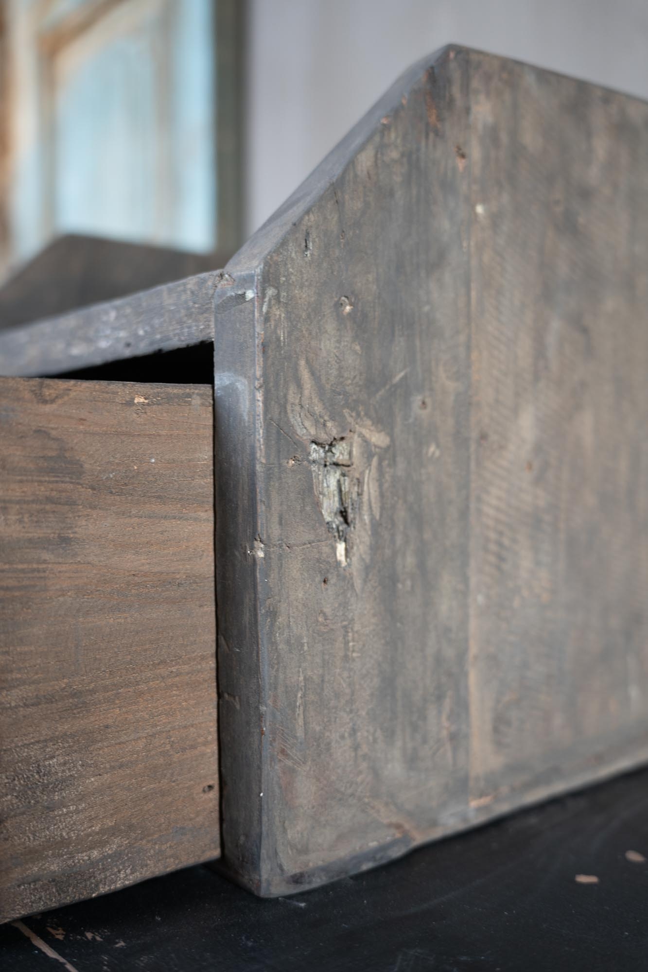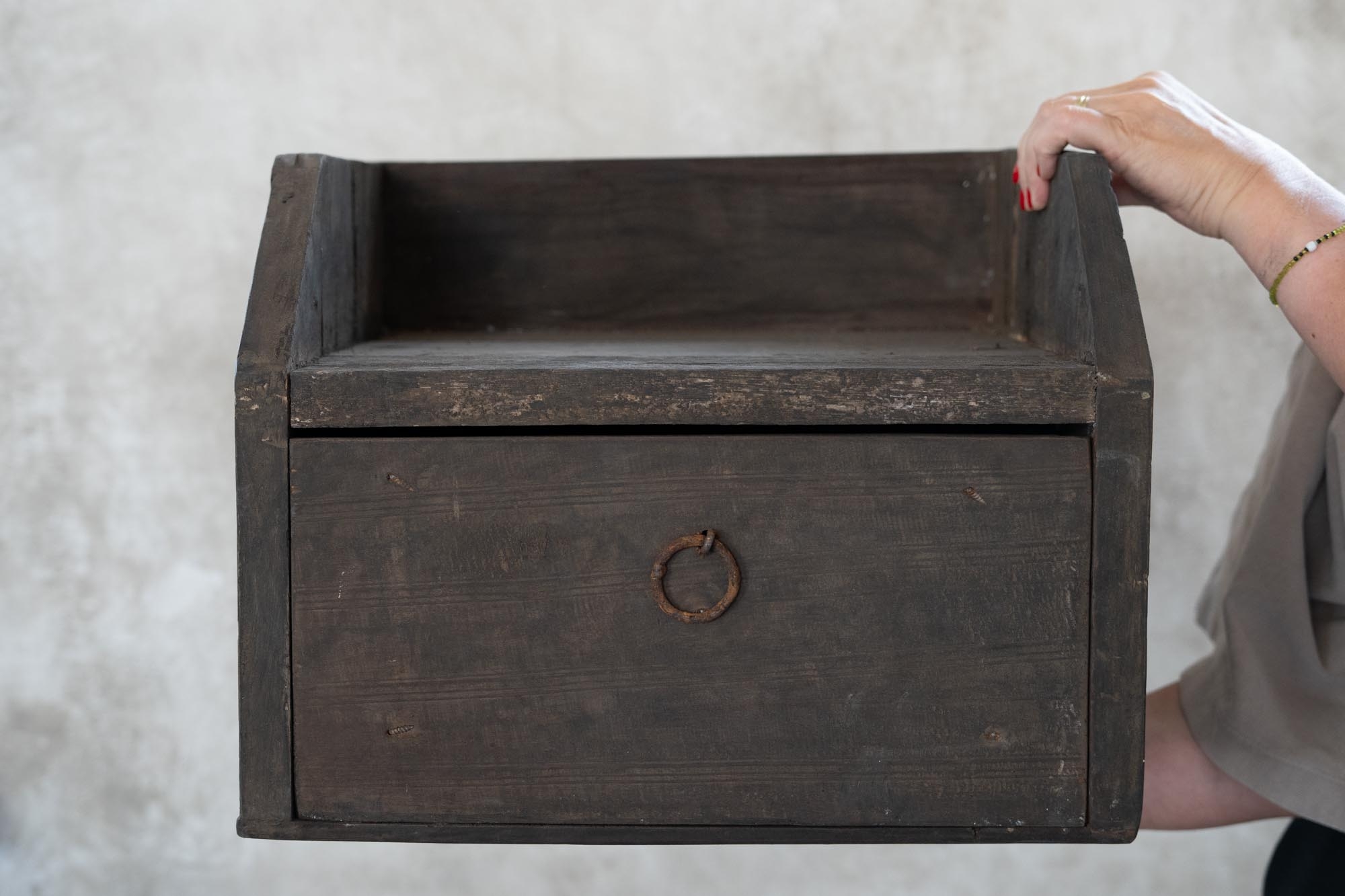 Authentieke houten Aura Peeperkorn Farm Box met lade, uitgevoerd in doorleefd hout. De robuuste uitstraling en praktische indeling maken dit een veelzijdig woonaccessoire. Gebruik hem in de keuken voor kruiden, in de badkamer voor verzorgingsproducten of in de woonkamer als stijlvolle opberger.