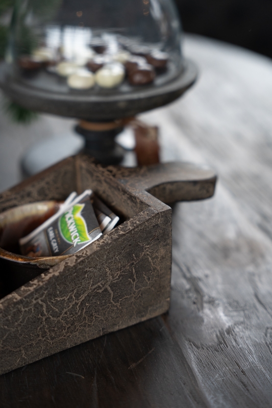 Dit houten schepje is een stijlvol en praktisch accessoire voor op tafel, in de keuken of als onderdeel van je interieurdecoratie. Het schepje heeft een robuuste, licht verweerde uitstraling die direct warmte en sfeer toevoegt aan elke setting.
