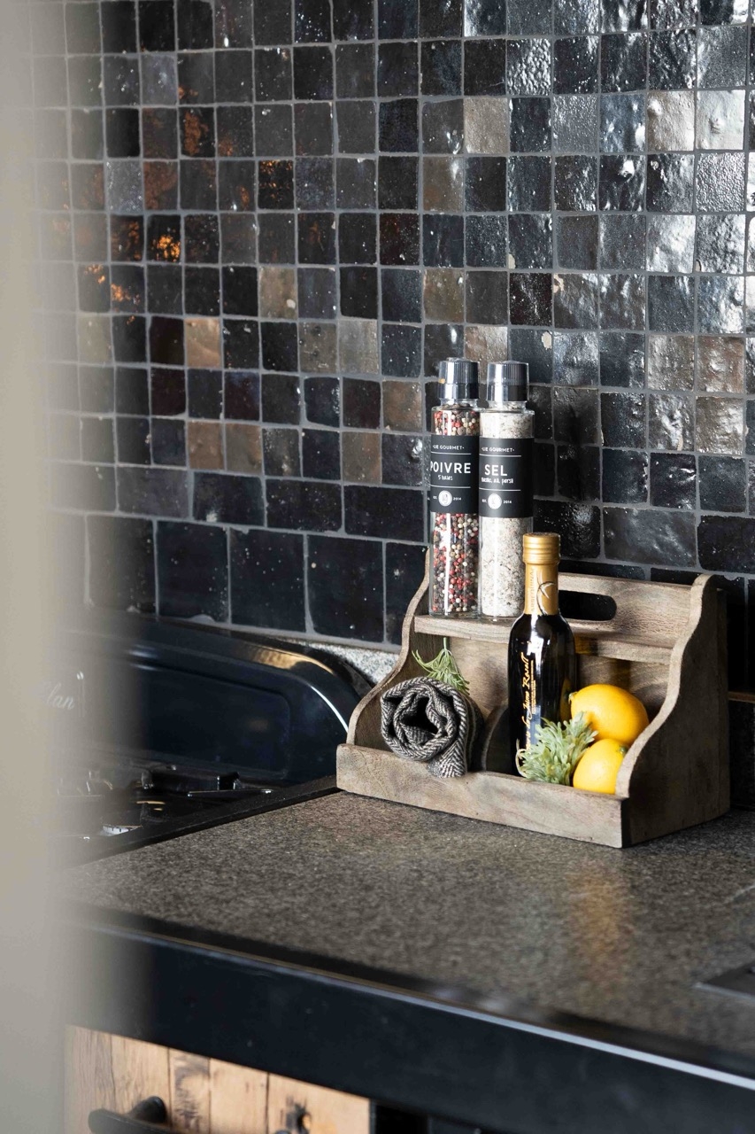 Gebruik de houder bijvoorbeeld in de keuken voor kruiden, olie of kleine accessoires. Ook naast de wasbak komt hij perfect tot zijn recht voor zeep, een doekje of afwasaccessoires.