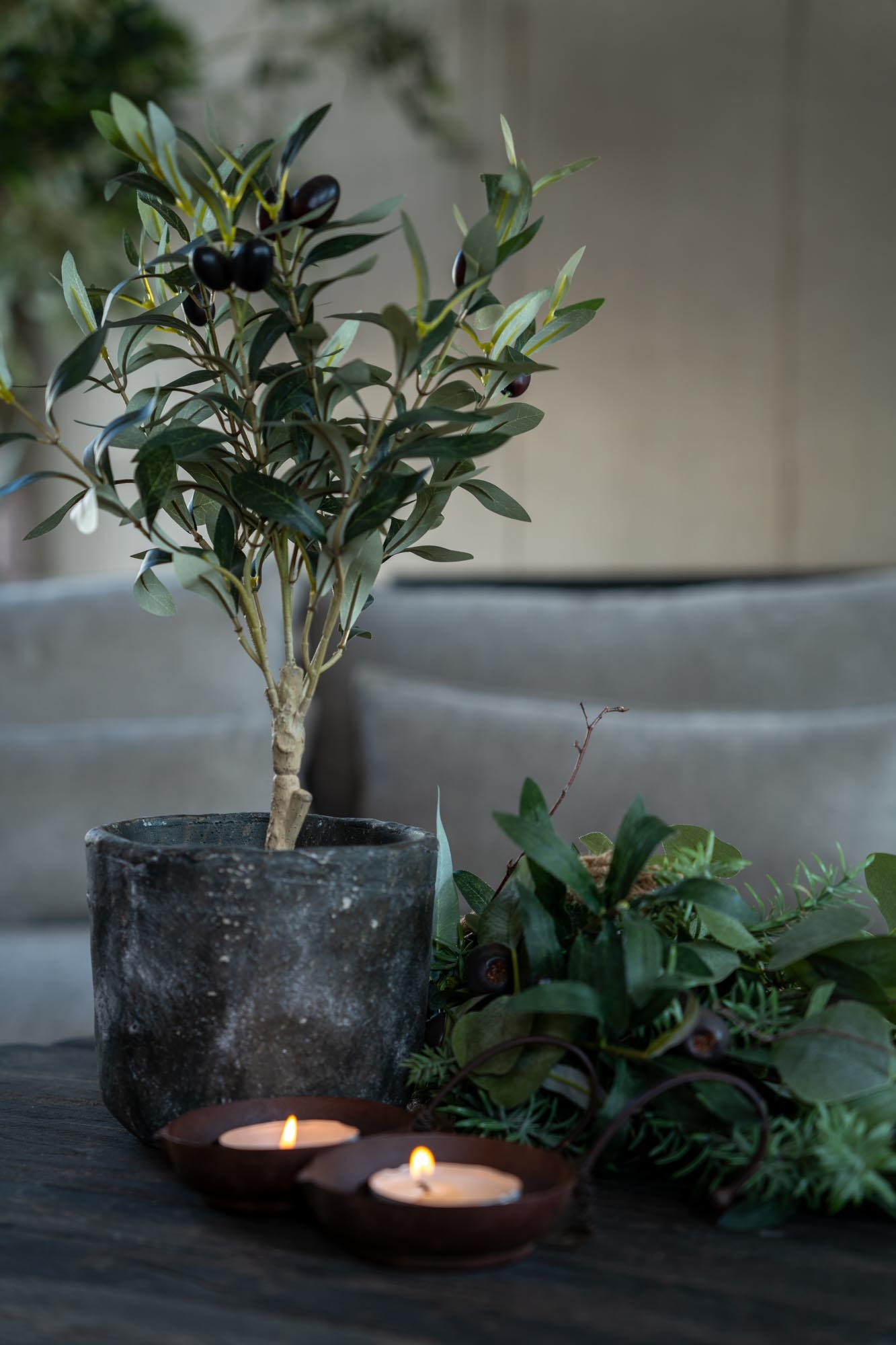 Deze metalen kaarsenhouder van Aura Peeperkorn heeft een stoere, authentieke uitstraling dankzij de donkere roetkleur en het doorleefde karakter.