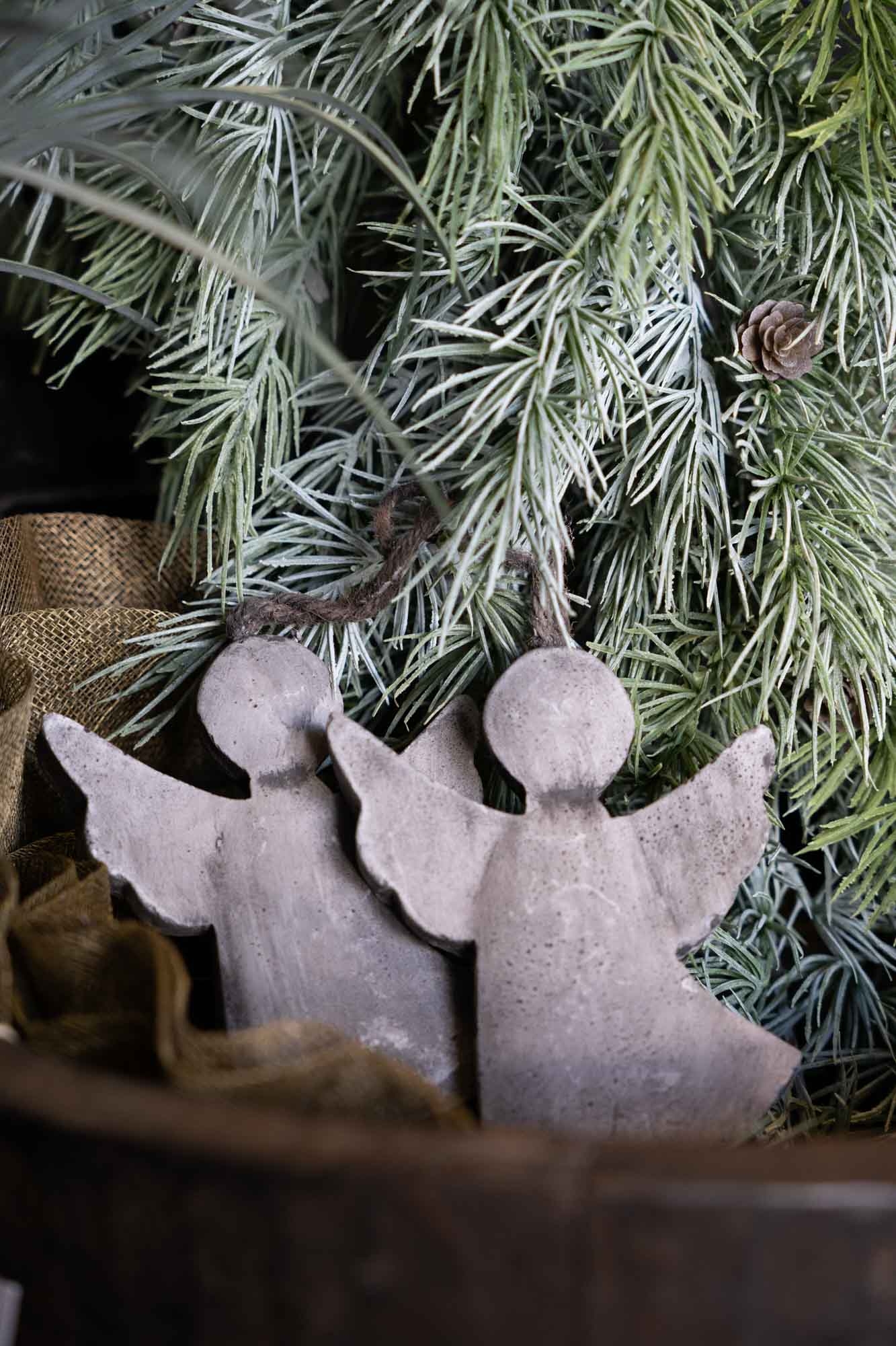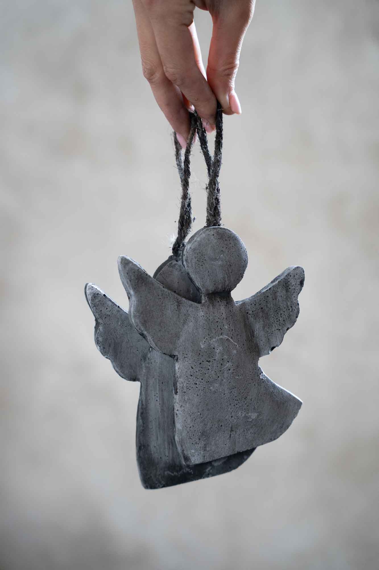 Deze handgemaakte betonnen engel met uitgesproken vleugels is een stoere en tijdloze hanger die perfect past in een landelijk interieur. De strakke vormgeving in combinatie met het ruwe beton maakt dit ornament een bijzonder detail in je kerstdecoratie.