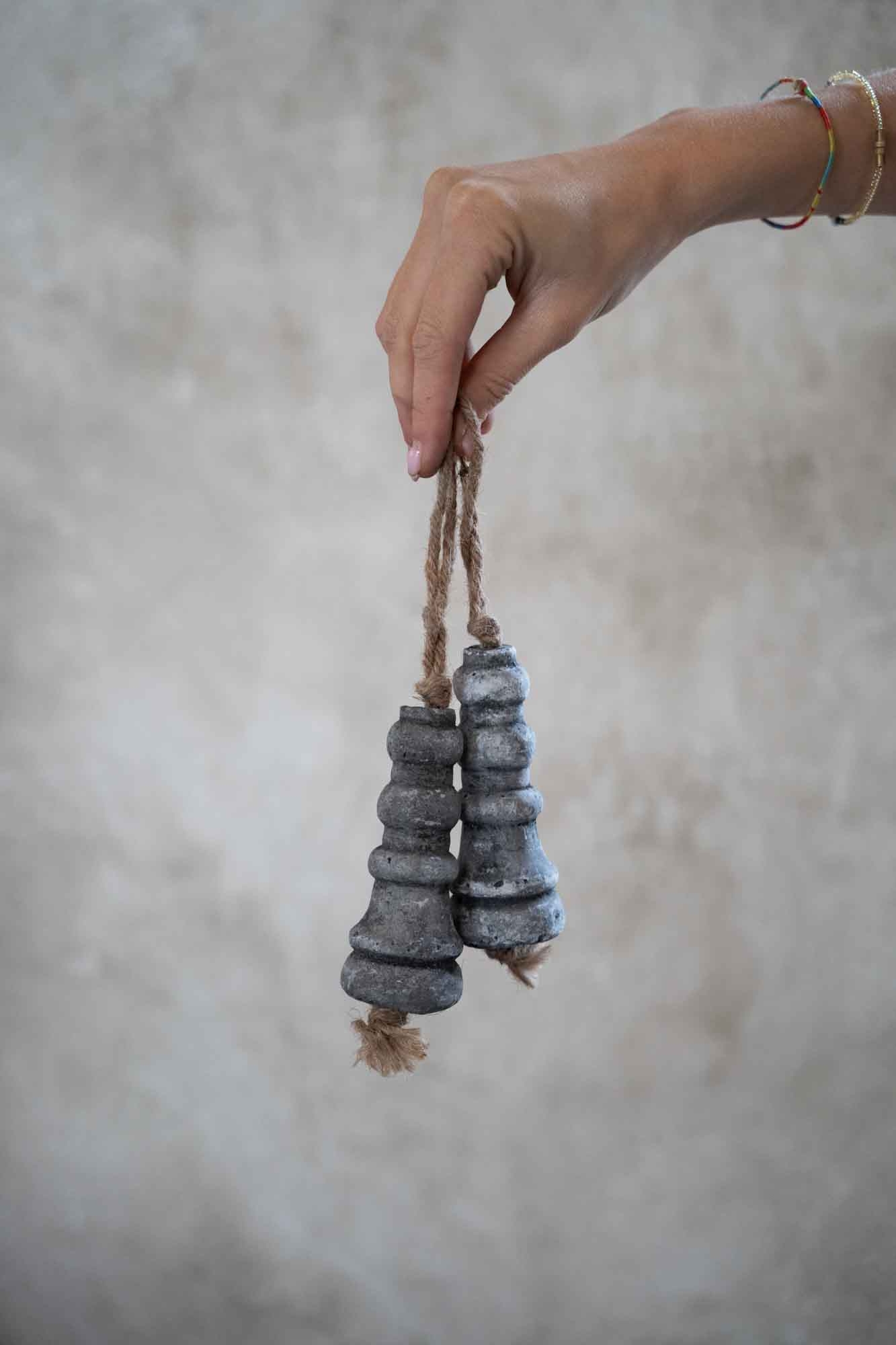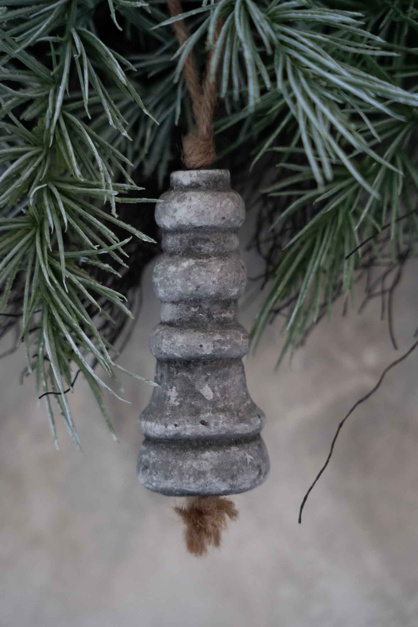 Deze robuuste betonnen hanger in de vorm van een pegel brengt een stoere en authentieke uitstraling in je interieur. Het strakke design gecombineerd met het grove touw maakt hem ideaal voor een landelijke of industriële kerstsfeer.