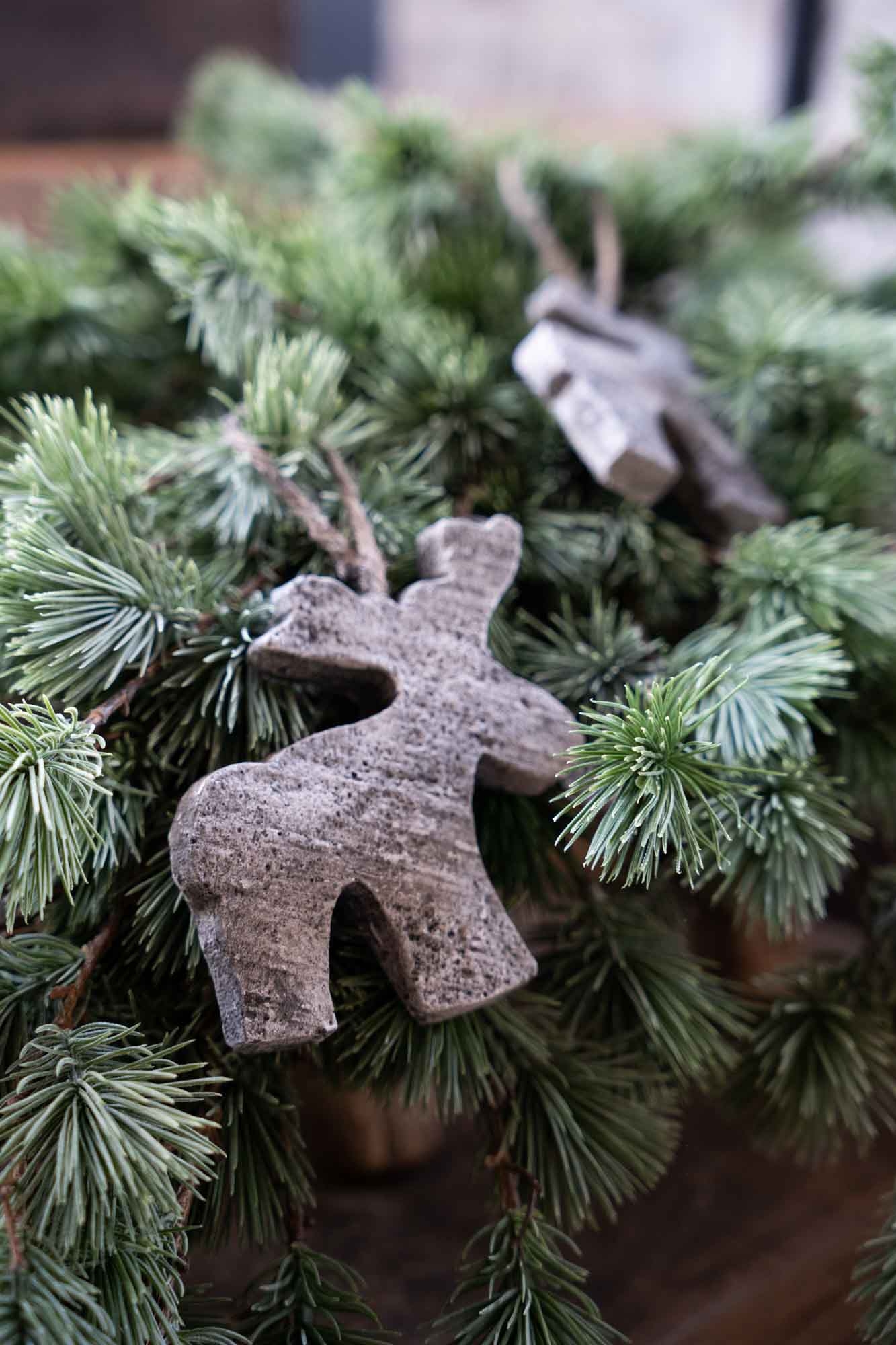 Hang Rudolf in de kerstboom, aan een tak of verwerk hem in een krans of guirlande. Door het gebruik van beton en jute krijgt de hanger een natuurlijke en authentieke uitstraling die mooi combineert met hout, groen en andere natuurlijke materialen.