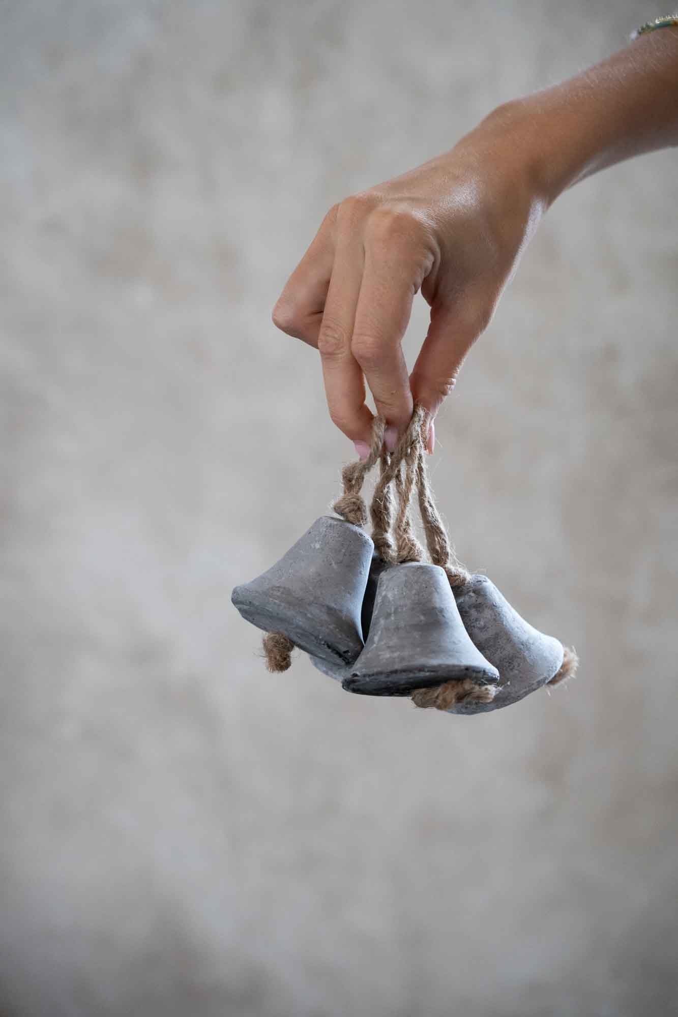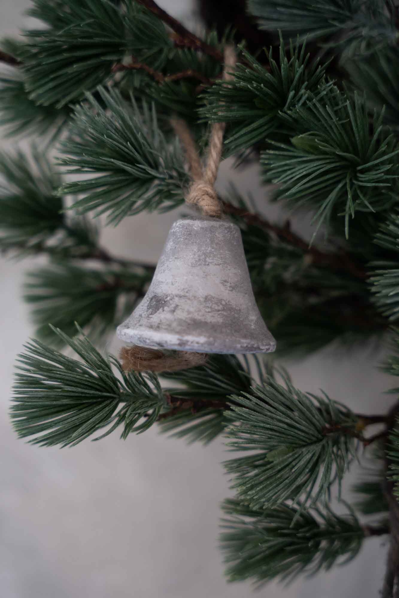 Dit handgemaakte betonnen klokje is iets groter dan het kleinere model. Het is een sfeervol ornament dat perfect past tussen de kerstdecoratie.