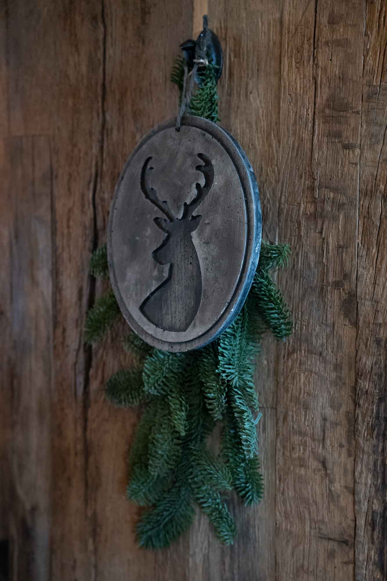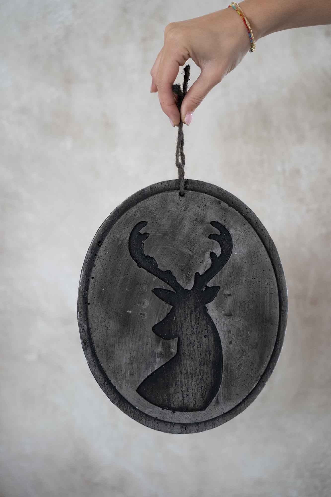 De grotere variant van het betonnen herten medaillon is een echte blikvanger. Hang hem aan de muur, deur of geef hem een prominente plek in je kerstdecoratie.