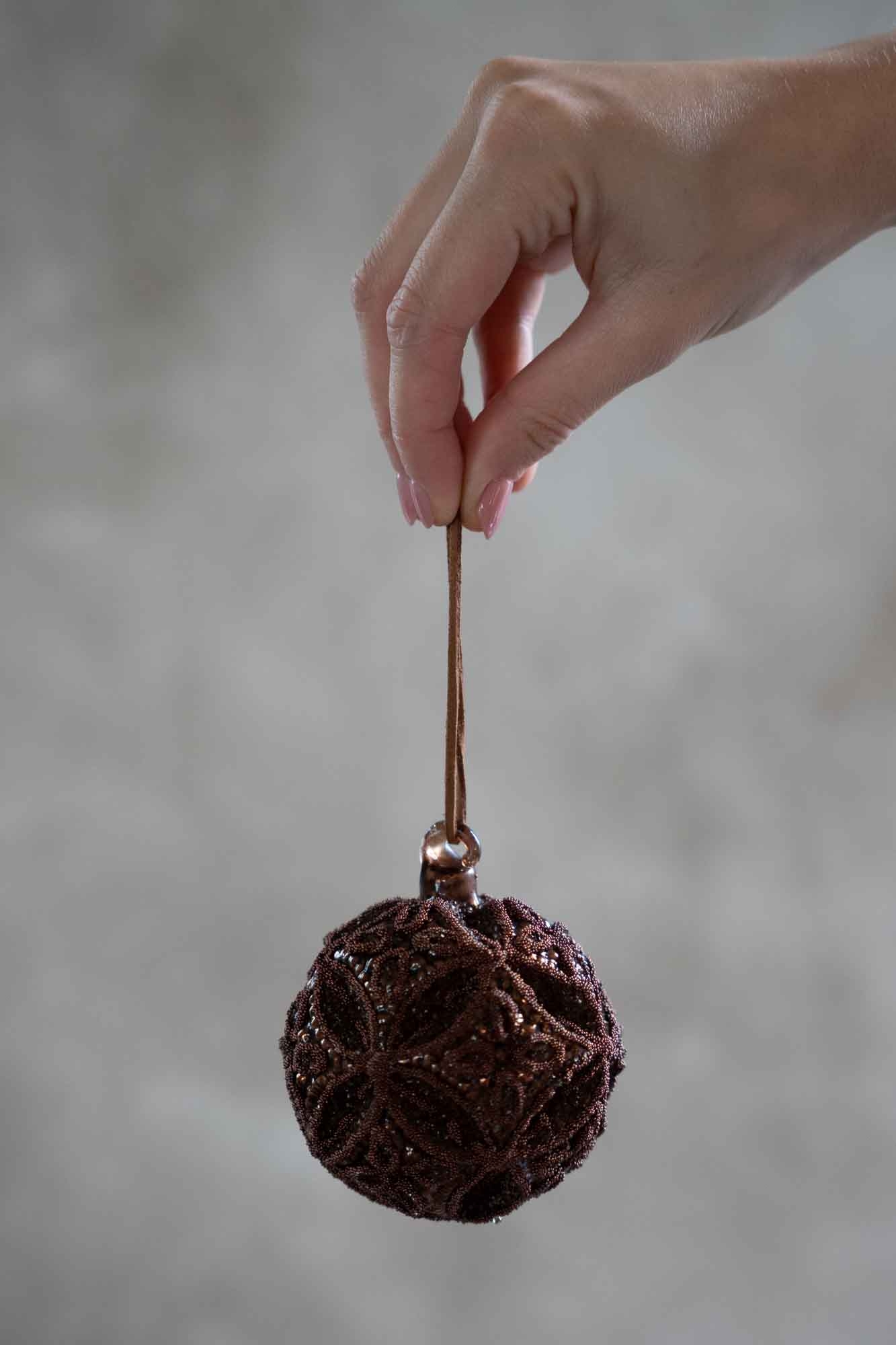 Kerstbal Bronze Glow Floral is een elegante toevoeging aan de kerstcollectie. De warme bronstint gecombineerd met een verfijnd bloemenpatroon en subtiele glitters zorgt voor een luxe, feestelijke uitstraling.