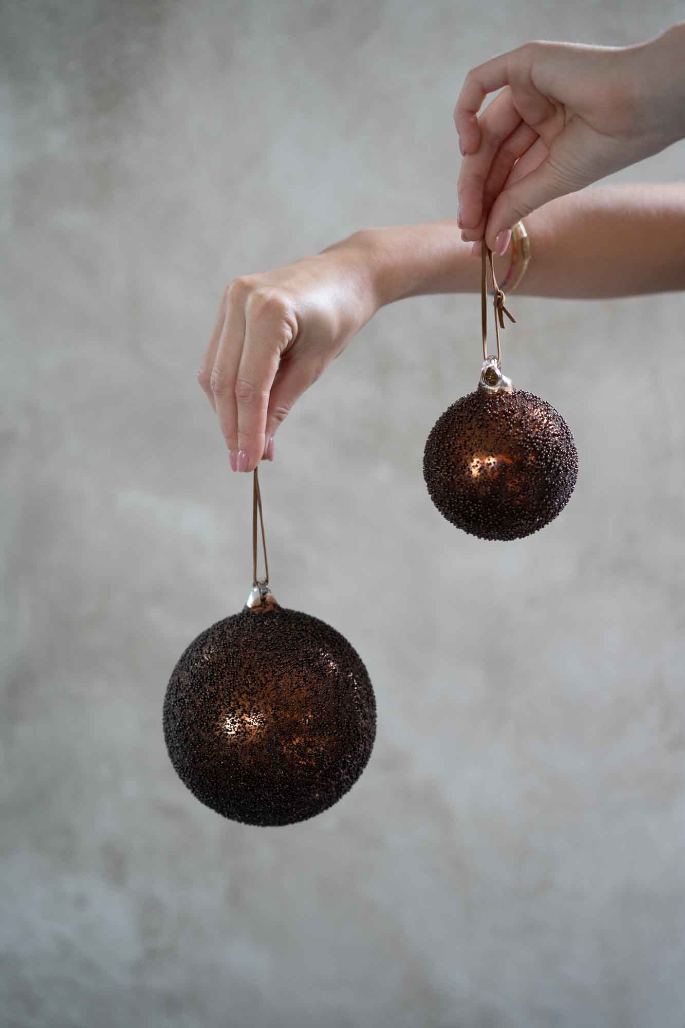 Kerstbal Bronze Glow brengt warmte en sfeer in huis tijdens de feestdagen. De diepe bronstint met subtiele glans geeft de bal een stijlvolle, luxe uitstraling.