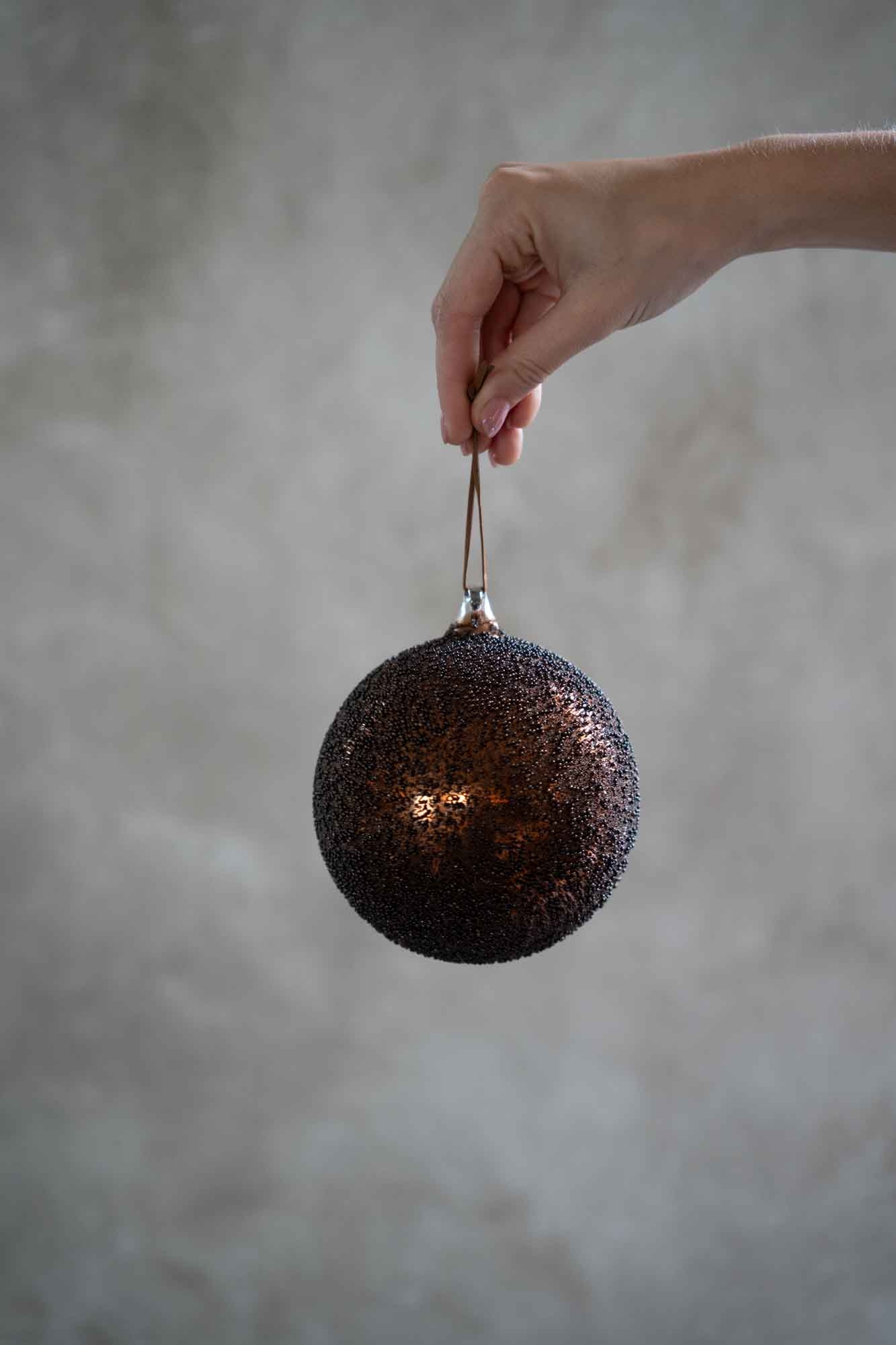 De kerstbal is stevig uitgevoerd en past perfect binnen een rustig, landelijk en sfeervol interieur.