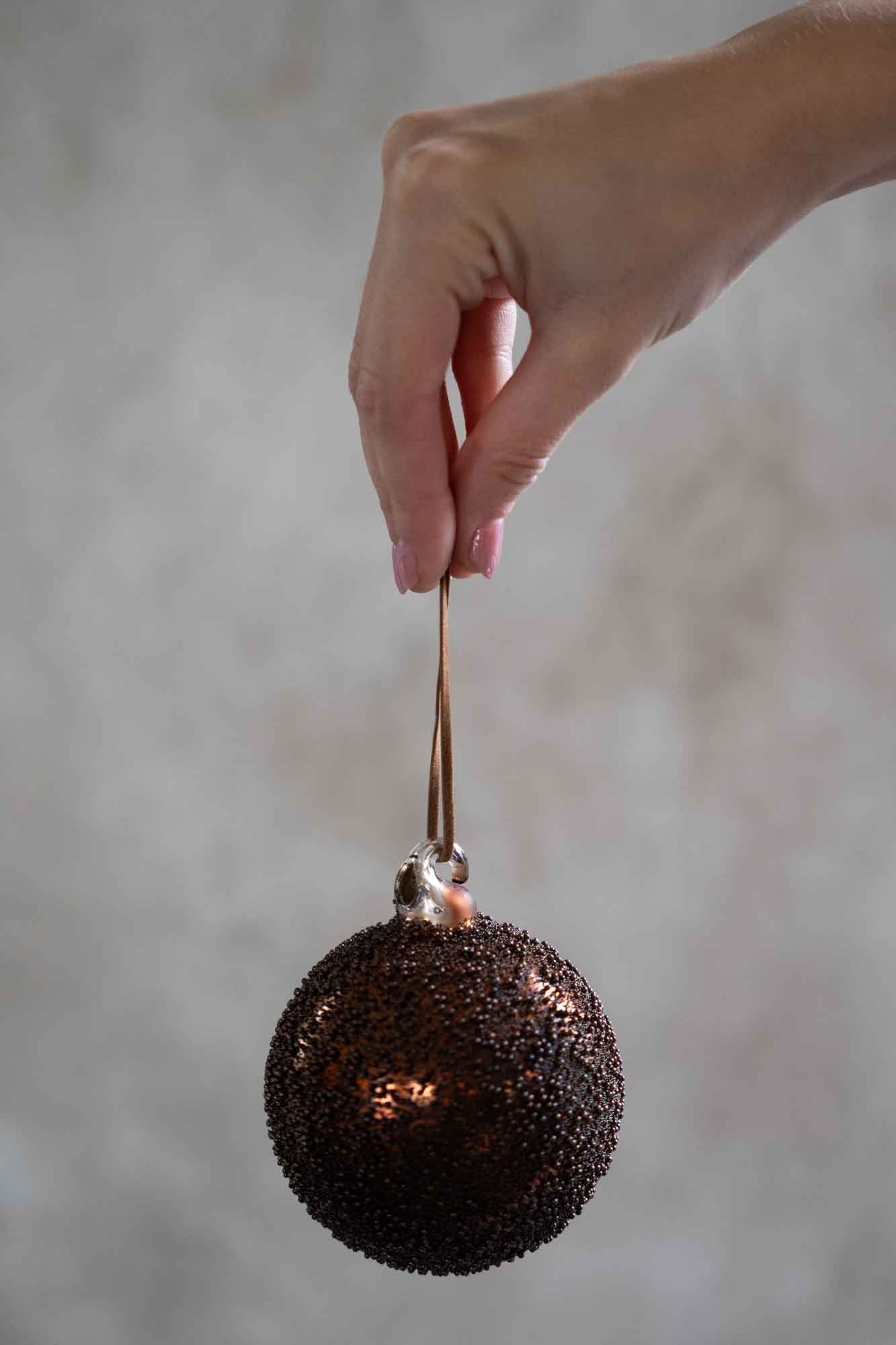 Kerstbal Bronze Glow brengt warmte en sfeer in huis tijdens de feestdagen. De diepe bronstint met subtiele glans geeft de bal een stijlvolle, luxe uitstraling.