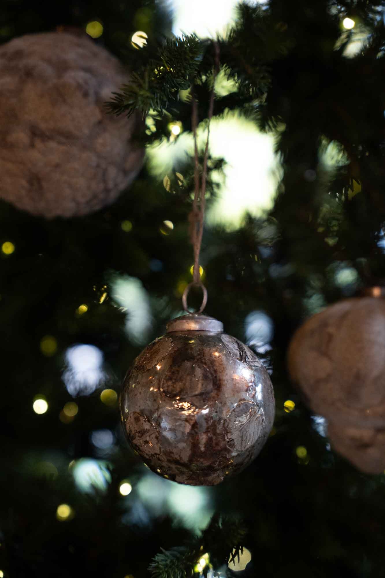 Het licht weerspiegelt prachtig in de glanzende afwerking, waardoor hij een rustige, luxe sfeer brengt in de kerstboom of als decoratie in een schaal.