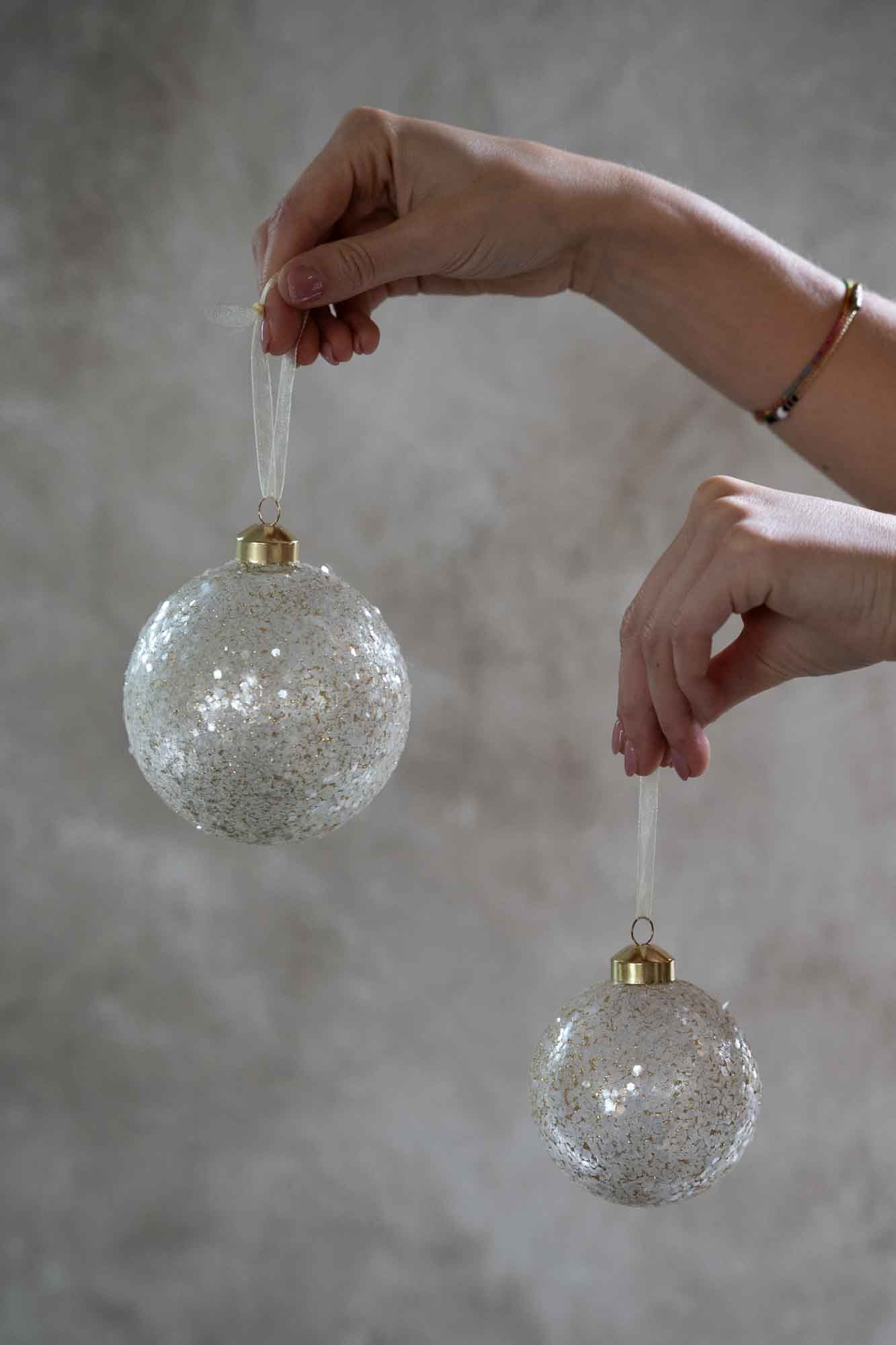 Kerstbal Frosted Glow heeft een betoverende, glinsterende uitstraling die perfect past in een warme kerstsetting. De bal is afgewerkt met een subtiele laag fijne glitters en kleine spiegelaccenten die het licht prachtig vangen en weerkaatsen.De champagnekleur zorgt voor een chique, zachte gloed die moeiteloos combineert met zowel natuurlijke als klassieke kerstkleuren. Een stijlvolle toevoeging aan de kerstboom, maar ook mooi op een schaal of in een krans voor extra sprankeling.