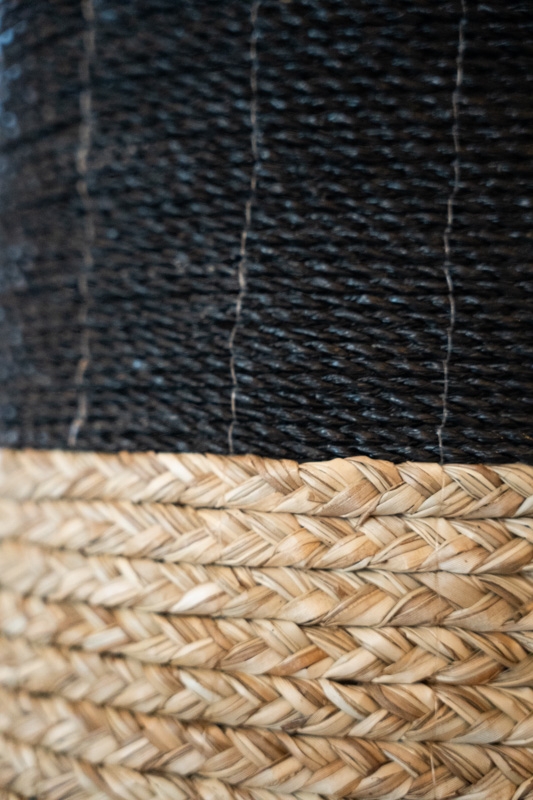 Deze gewoven mand heeft een rustige, natuurlijke uitstraling en past moeiteloos in een sfeervol interieur. Het contrast tussen het diepe zwart en de beige onderzijde zorgt voor een warm en tijdloos geheel. De stevige vorm en praktische handgrepen maken de mand zowel functioneel als decoratief.