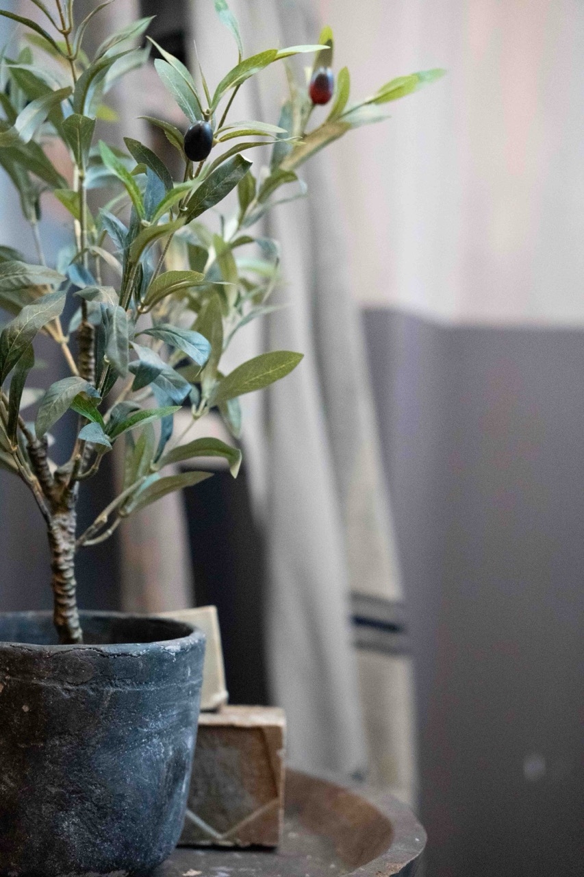 Deze set kunst olijfbomen in pot brengt direct een rustige, mediterrane sfeer in huis. De verfijnde blaadjes en subtiele olijven geven elke boom een natuurlijke en realistische uitstraling. De bijpassende pot met sobere afwerking zorgt voor een stoere, tijdloze look die perfect past binnen een landelijk, sober of modern interieur.