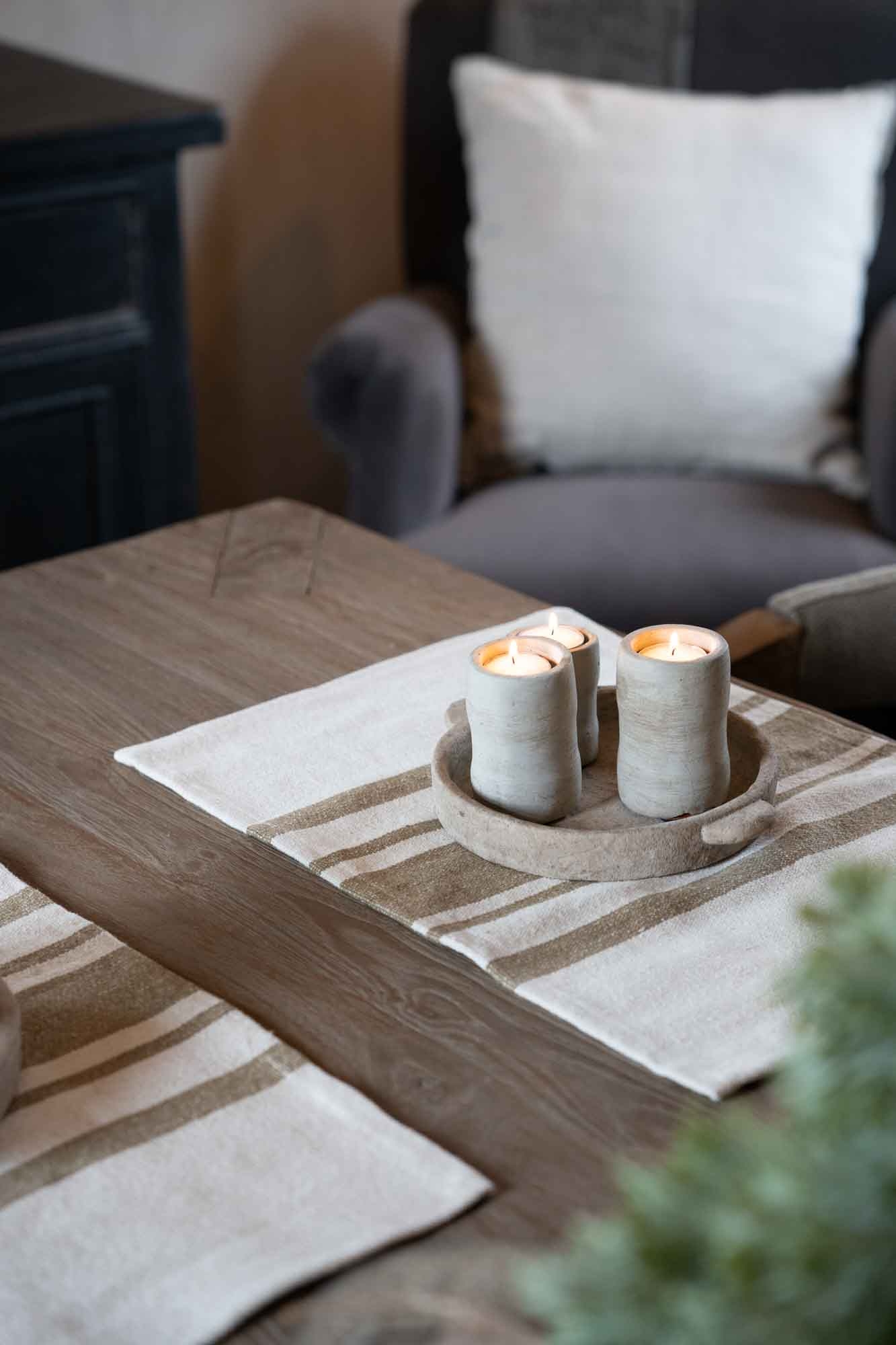 Breng natuurlijke charme naar je tafel met deze prachtige set van 4 canvas placemats. Gemaakt van stevig canvas met een subtiel gestreept patroon in neutrale tinten, passen ze perfect in een landelijk, sober of tijdloos interieur.