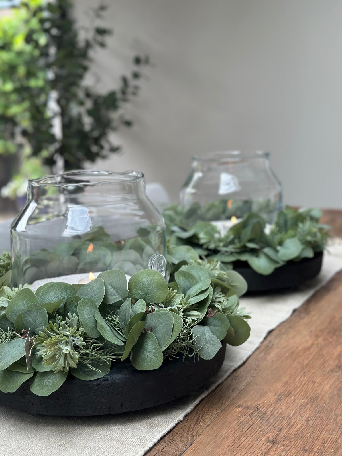 Let op: Exclusief het glazen theelichthoudertje in het glas. Deze is ook te bestellen in de webshop. Exclusief de decoratie in het glas en het schaaltje.