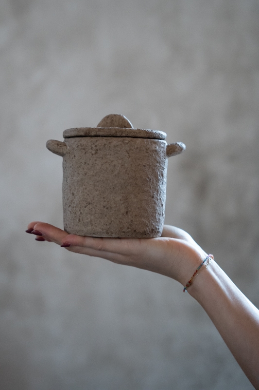 Potje Lio is een sober en karaktervol potje met een rustige, natuurlijke uitstraling. De zachte steenachtige structuur en het bijpassende deksel geven dit potje een tijdloos gevoel dat mooi aansluit bij een landelijk of warm modern interieur.