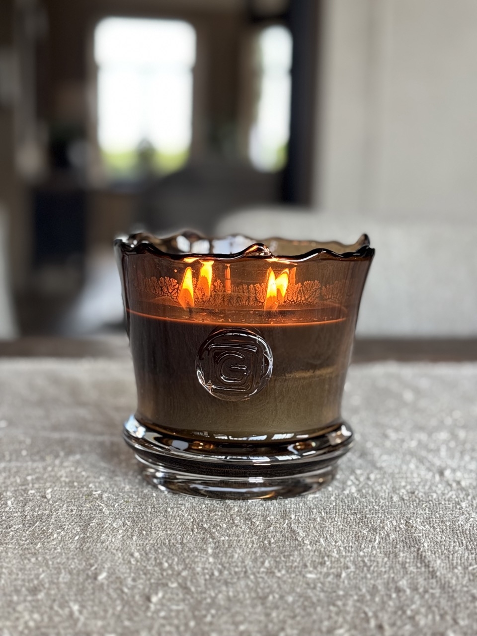 De Gommaire Scented Candle Ali brengt warmte, luxe en een vleugje natuur in je interieur. Deze stijlvolle kaars, gegoten in een mondgeblazen glazen houder met organische afwerking, straalt pure elegantie uit.