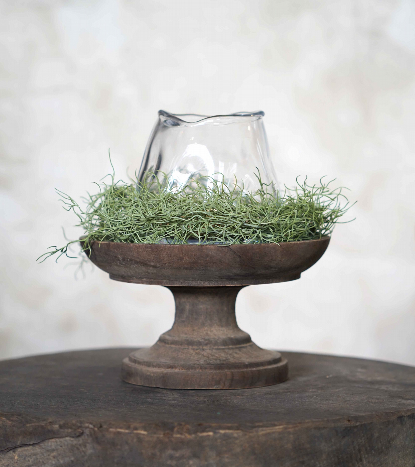 Een prachtige complete set die direct sfeer en warmte in huis brengt. De houten schaal Sem met voet heeft een stoere, doorleefde uitstraling en vormt de perfecte basis.