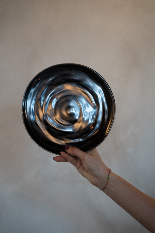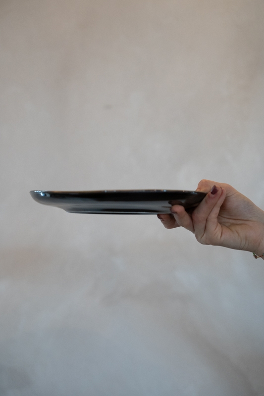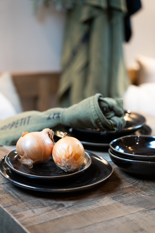 Dit donkerbruine ontbijtbord is een stijlvolle en veelzijdige toevoeging aan het servies. De donkerbruine tint in combinatie met de subtiele glans geeft het bord een rustige, elegante uitstraling. Het licht golvende oppervlak en de verfijnde rand zorgen voor een ambachtelijke en luxe look.