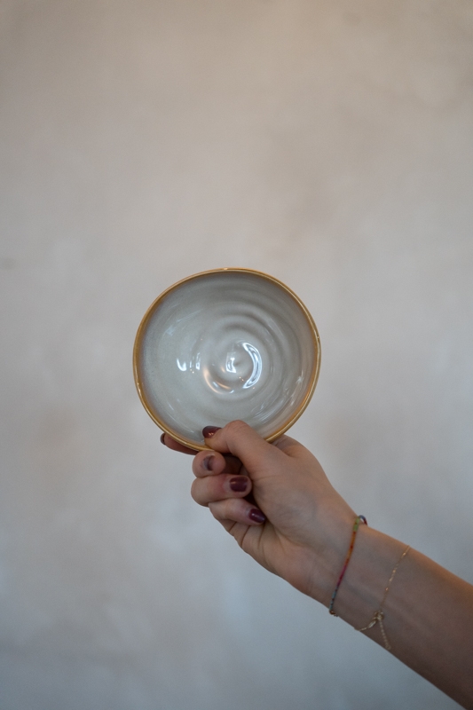Deze middelgrote beige schaaltjes zijn een stijlvolle aanvulling op hetzelfde servies en stralen rust en elegantie uit. De zachte beige tint en de subtiele glanzende afwerking geven de schaaltjes een warme, verfijnde uitstraling. De fijne rand zorgt voor een luxe detail dat perfect aansluit bij de rest van het servies.