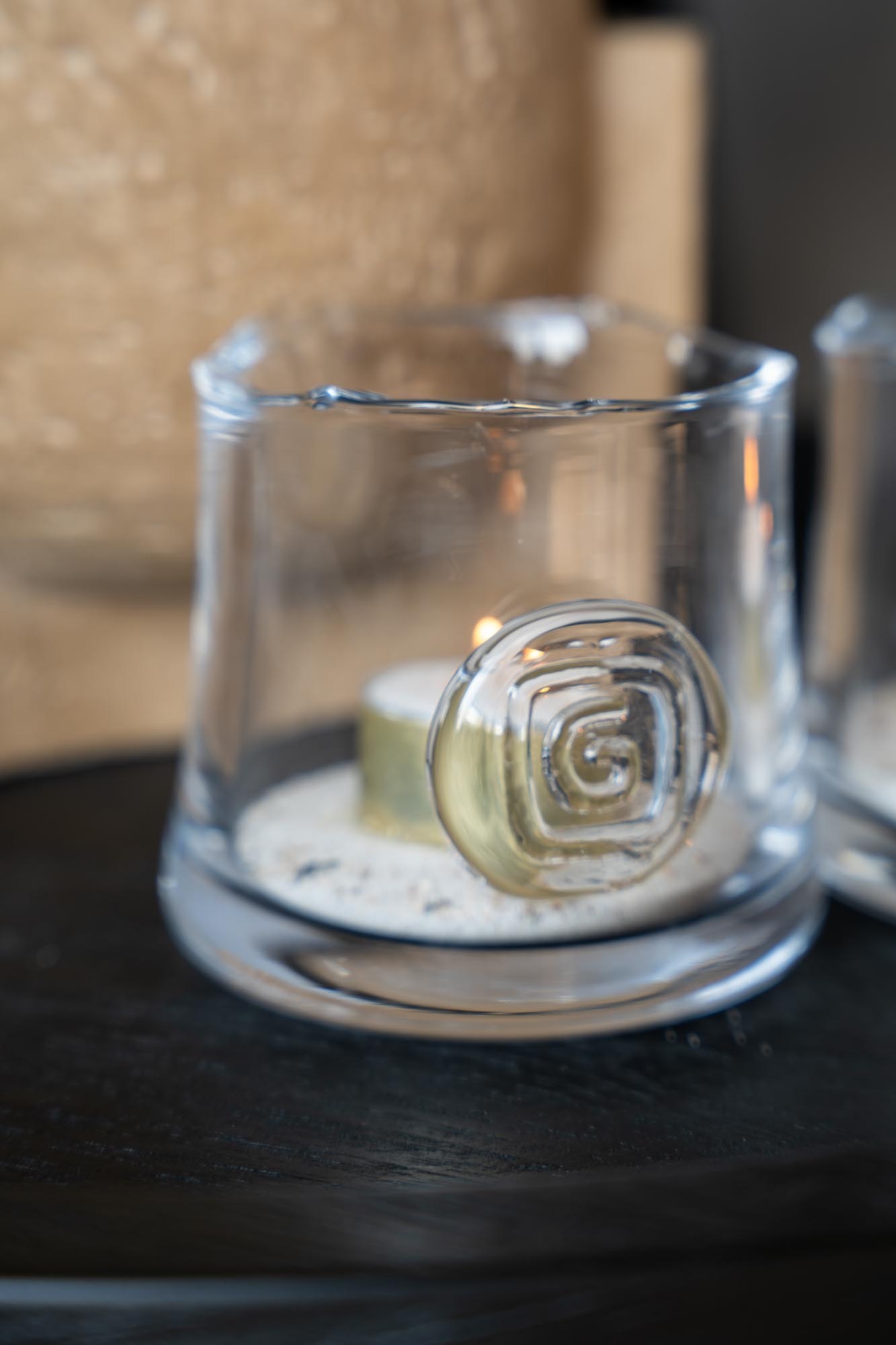 Dit rustieke glazen Gommaire theelicht brengt meteen een warme, natuurlijke sfeer in huis. Het dikke, helder glas heeft een golvende rand en een ambachtelijke uitstraling die elk stuk uniek maakt. Zet het op tafel, in een nisje of op een dressoir en laat het zachte kaarslicht voor sfeer zorgen. Elk windlicht is uniek en mond geblazen.