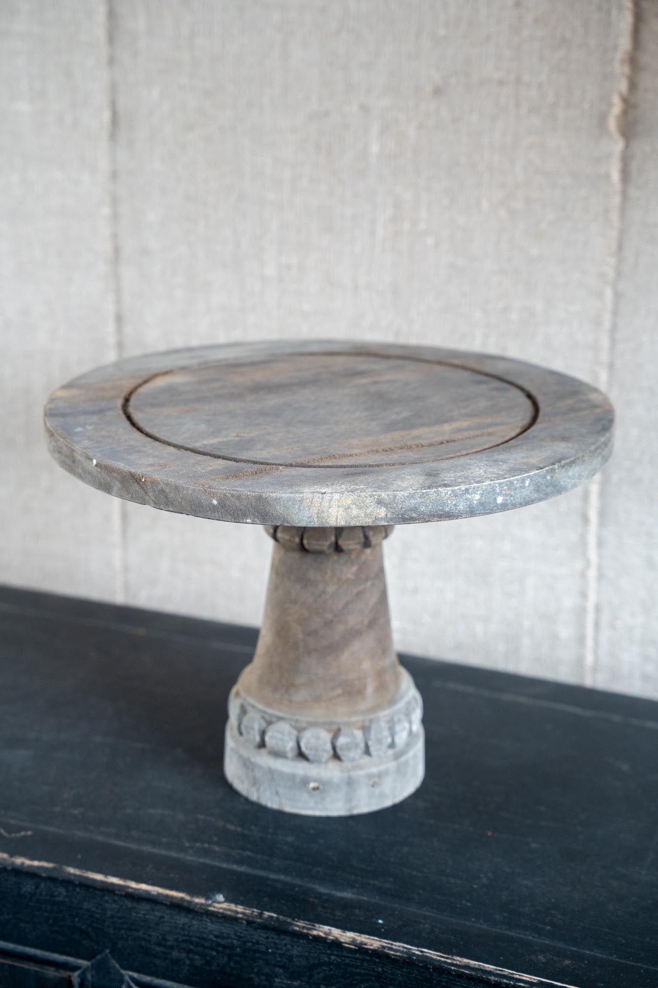 Taartplateau Finn is een robuust en sfeervol plateau op voet, uitgevoerd in donker verweerd hout met een ambachtelijke afwerking. De subtiele details in de voet en de doorleefde uitstraling geven dit plateau een uniek karakter.