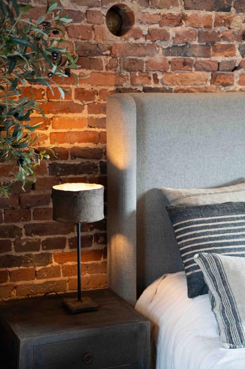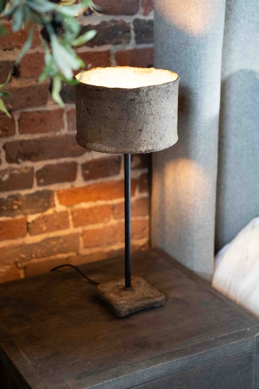 De tafellamp met kap – Feline is een sfeervol en compact lampje dat perfect past binnen een warme, landelijke stijl. De slanke metalen voet in combinatie met de natuurlijke kap zorgt voor een zachte en gezellige verlichting in huis.