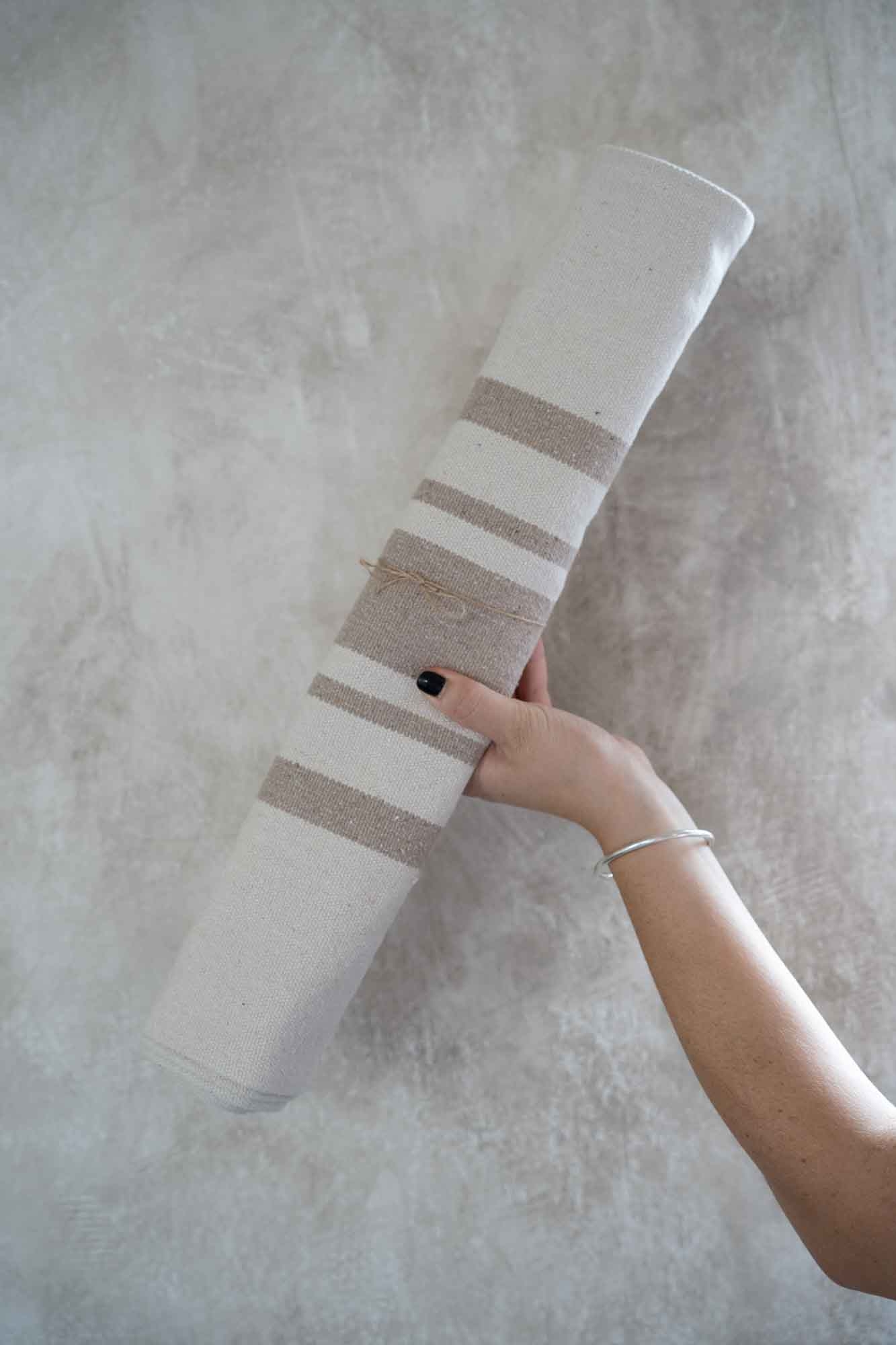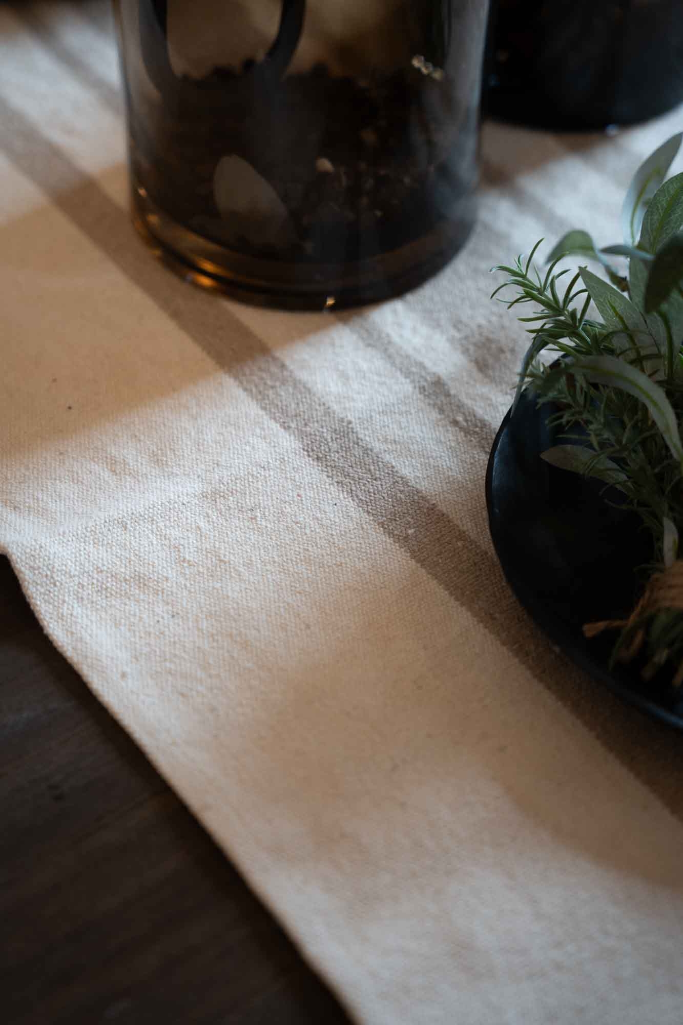 Breng natuurlijke charme naar je tafel met deze prachtige tafelloper. Gemaakt van stevig canvas met een subtiel gestreept patroon in neutrale tinten, passen ze perfect in een landelijk, sober of tijdloos interieur.