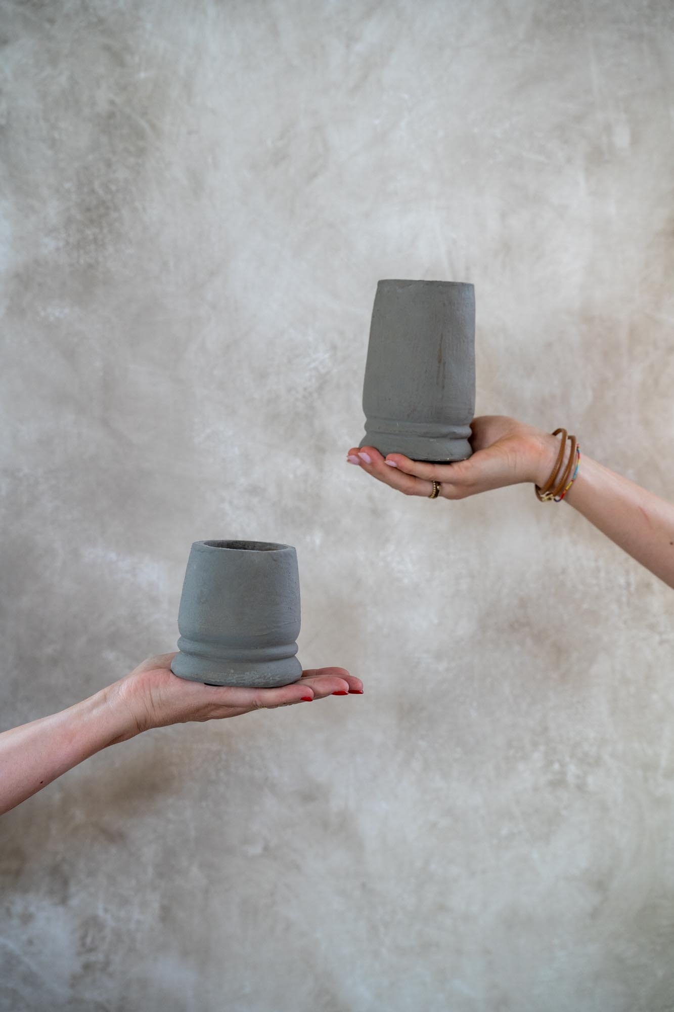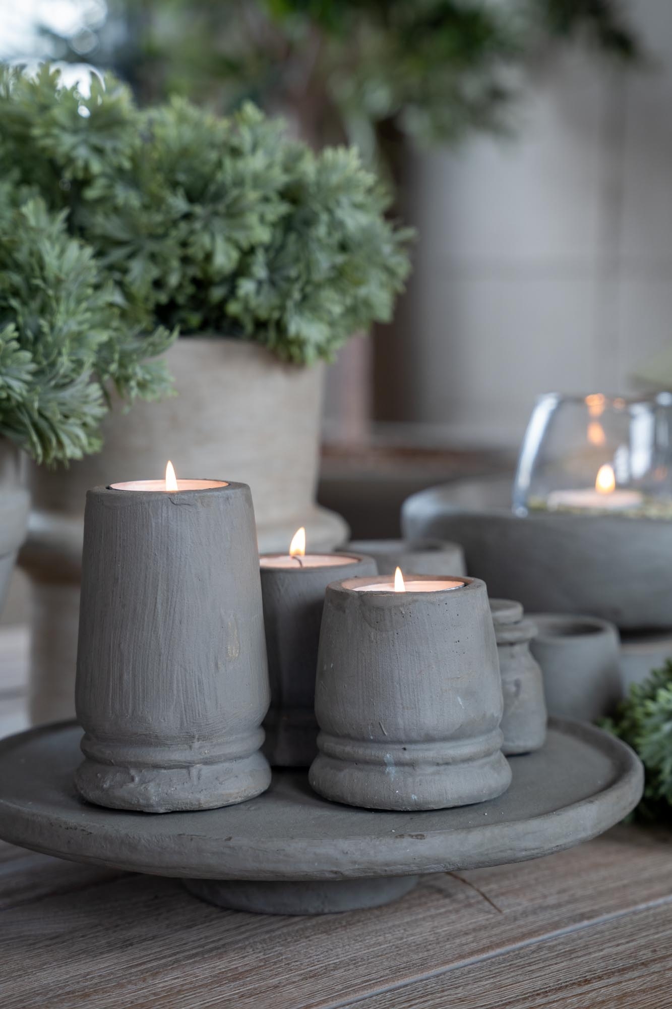Deze sfeervolle set van twee theelichthouders is een stijlvolle toevoeging aan elk interieur. Gemaakt van stevig materiaal met een zachte, matte betonlook in een warme grijsgroene tint. De combinatie van twee formaten zorgt voor een speels én evenwichtig geheel.