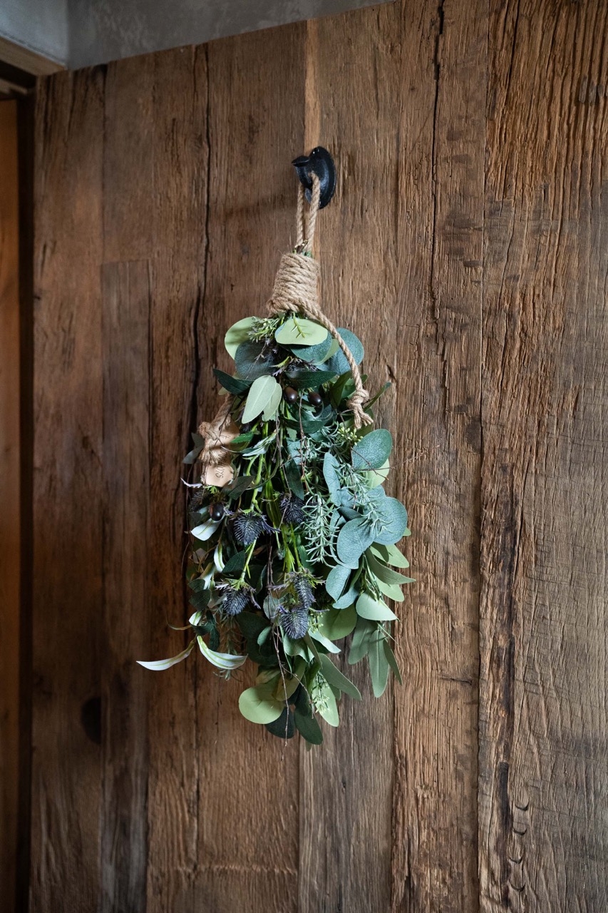 Toef Iris is een robuuste en karaktervolle toef, rijk gevuld met een mix van kunstgroen en kunstbloemen. Fris olijfgroen, zachte eucalyptus, speelse distels en echte berkentakjes zorgen samen voor een natuurlijke en levendige uitstraling. Hang de toef aan een haak of kastdeur voor een stoer accent, of leg hem nonchalant neer als decoratie. De brede juten strik geeft het geheel een krachtige, pure uitstraling.