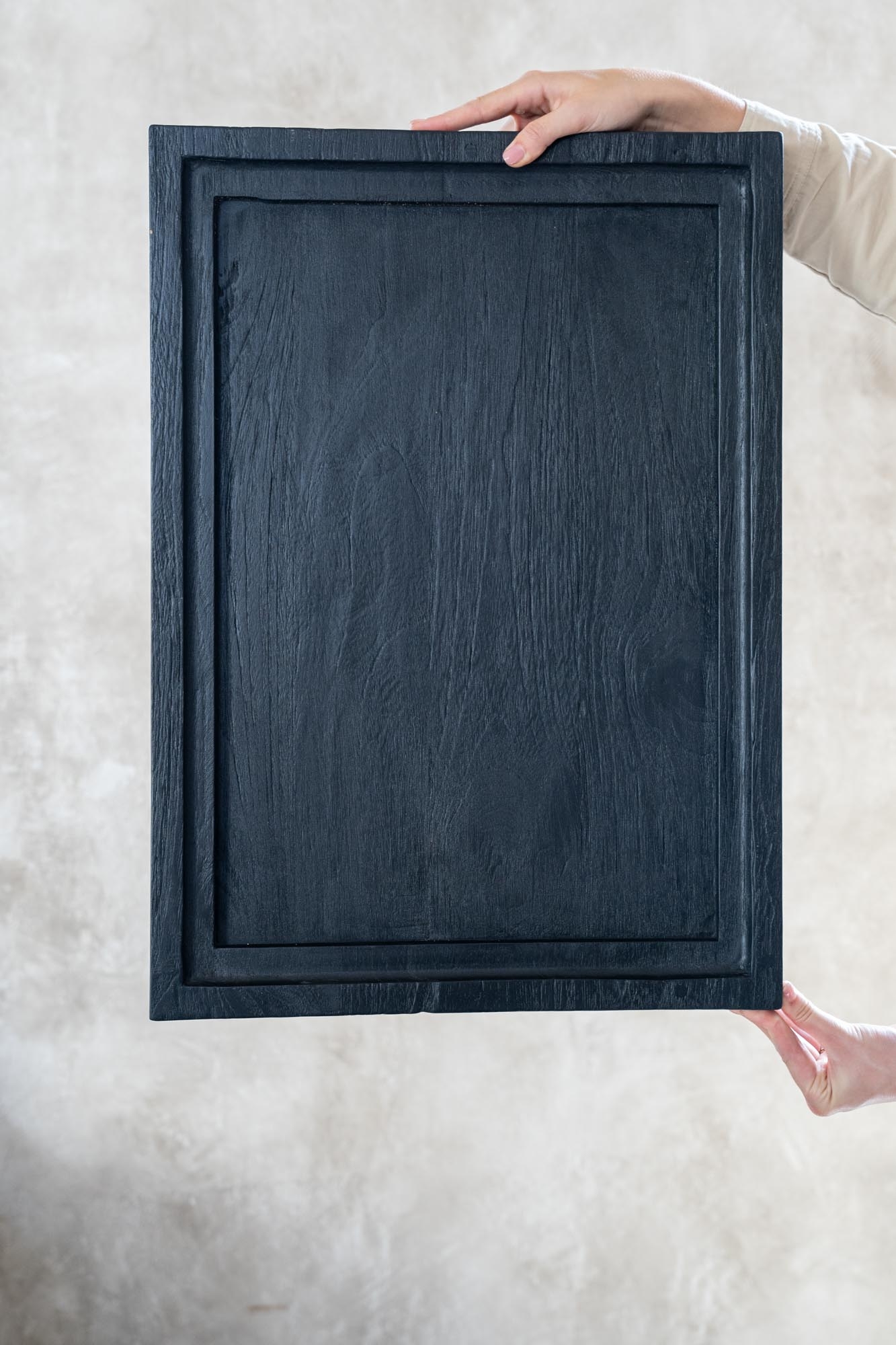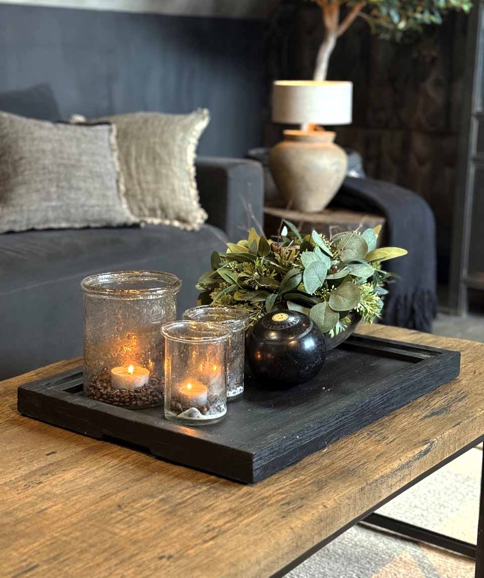 De Tray Luna van Gommaire is een stoer, zwart dienblad met een rustige en stijlvolle uitstraling. Het robuuste hout en de strakke vorm geven haar een tijdloze charme die in elk interieur past. Mooi op een salontafel met windlichten, een vaasje of een groenaccent voor een sfeervol geheel.