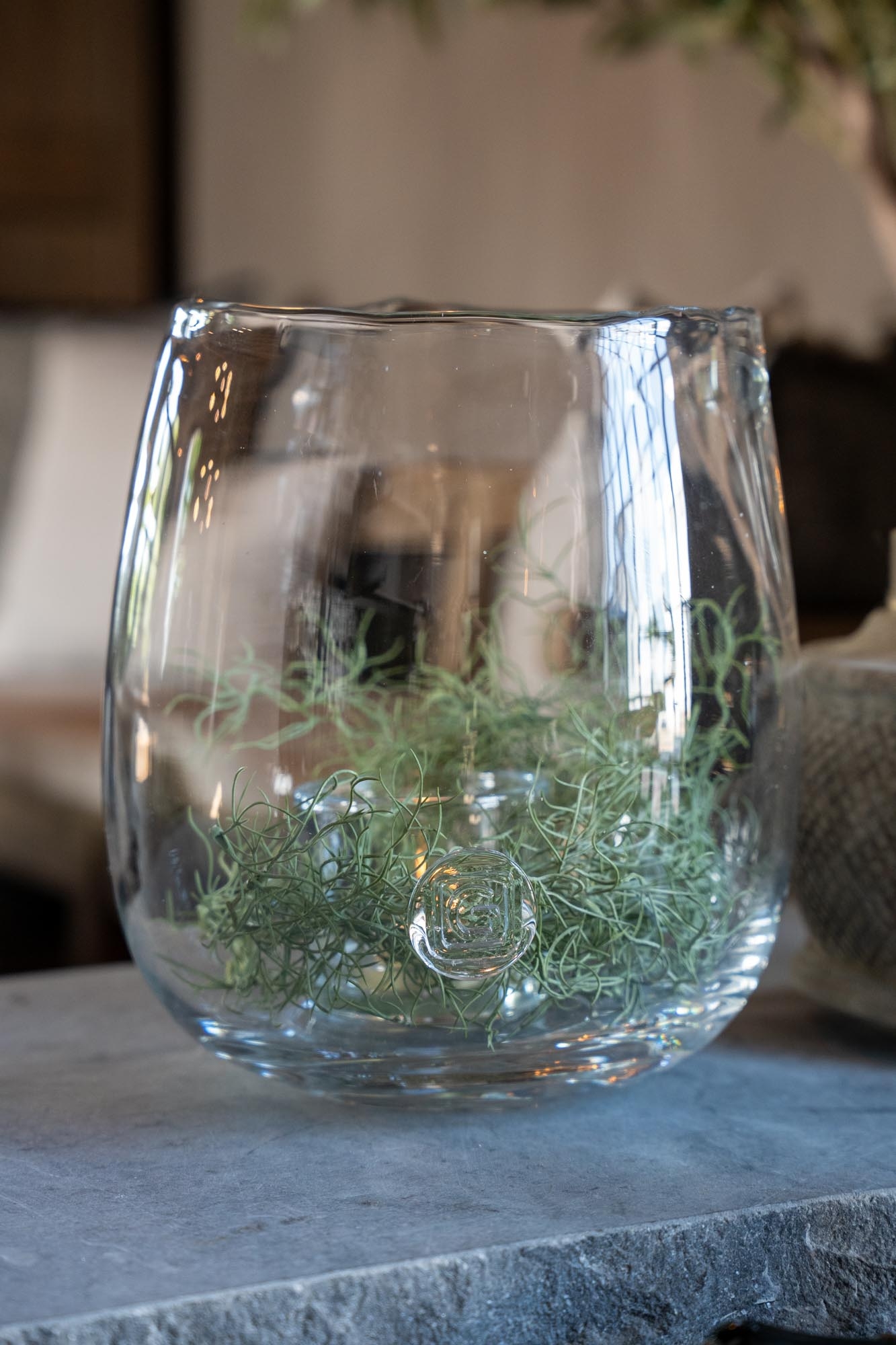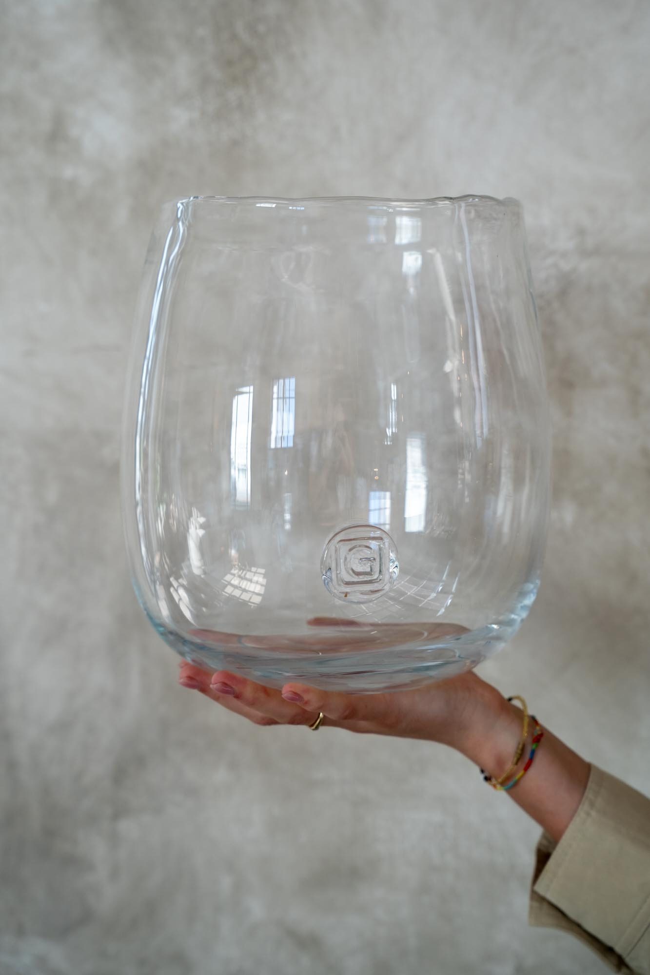 Deze grote versie van de Gommaire Diana-vaas is een echte blikvanger. Zet haar los op tafel met een bos kunstbloemen of vul de bodem met mos en een kaarsje. Perfect voor een open kast, keukeneiland of overdekt terras. Tijdloos, sfeervol en verrassend veelzijdig. Elk windlicht is uniek en mond geblazen.