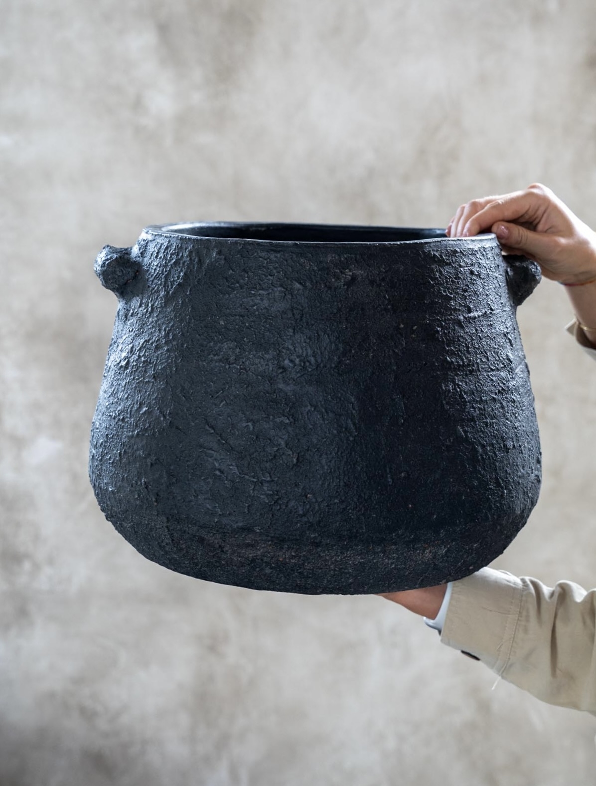 Deze compacte, stoere Gommaire vaas is perfect voor kleinere plekken waar je toch wat karakter wil toevoegen. De grove textuur en donkere tint maken 'm bijzonder, ook zonder inhoud. Mooi met een kunstplantje of gewoon op zichzelf. Ook verkrijgbaar in medium. Elke vaas is uniek in vorm en kleur, dus kan afwijken van de foto.