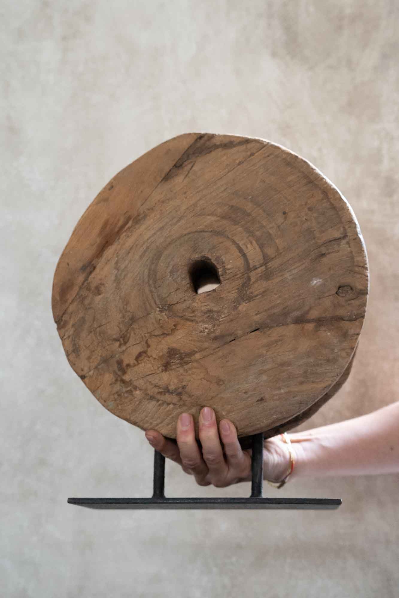 Het Wiel op Statief is een uniek woonaccessoire met karakter en een stoere, natuurlijke uitstraling. Dit robuuste houten wiel is vervaardigd uit oud, doorleefd hout en geplaatst op een metalen statief, waardoor elk stuk zijn eigen authentieke charme heeft.