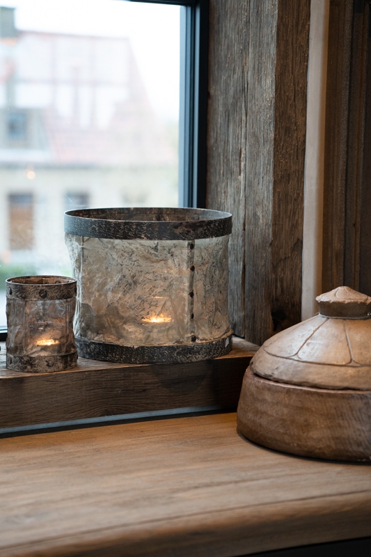 Windlicht Maura brengt een warme, rustieke sfeer in ieder interieur. De rijke bruine tint en de karaktervolle, geplooide structuur geven dit windlicht een doorleefde uitstraling die direct opvalt. De robuuste metalen randen met hun licht verweerde afwerking versterken het stoere en authentieke karakter.